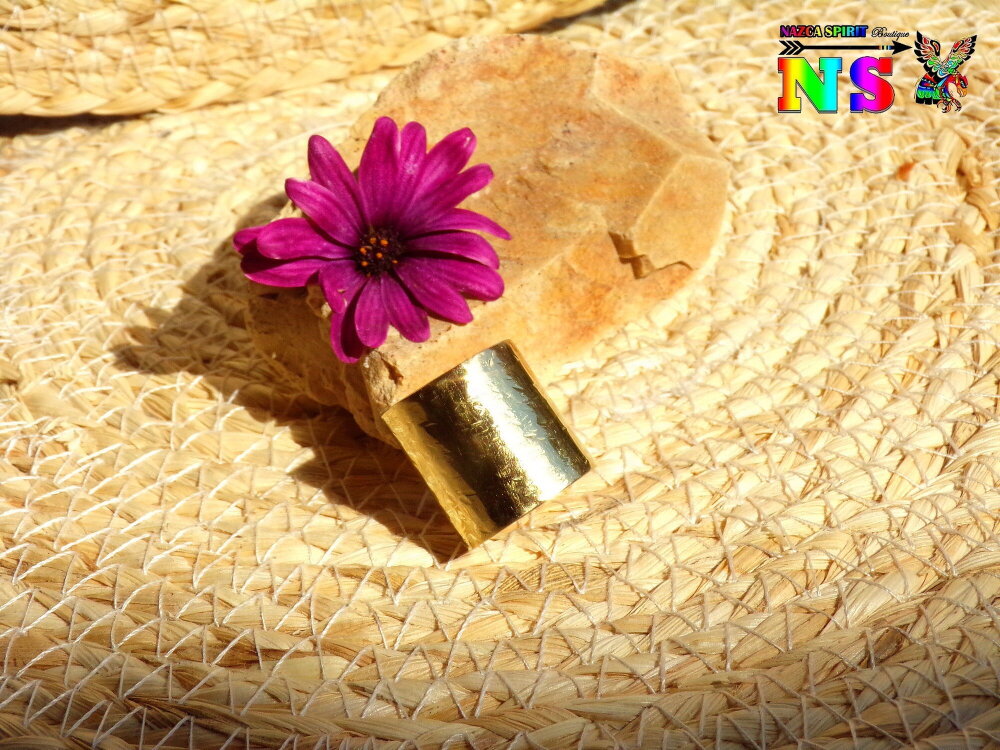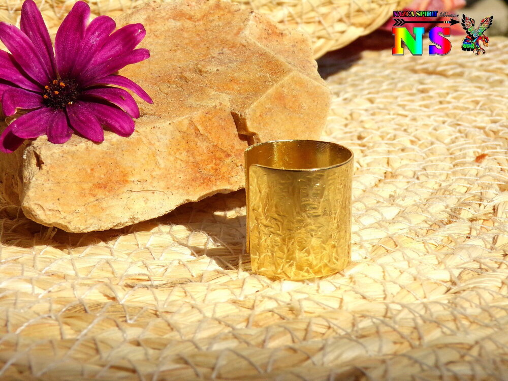 Bague Esclave Jonc Réglable en Laiton Doré Martelé - Anneau Fait Main - Bijou Artisanal Création Unique - Anneau Large Or Brillant.