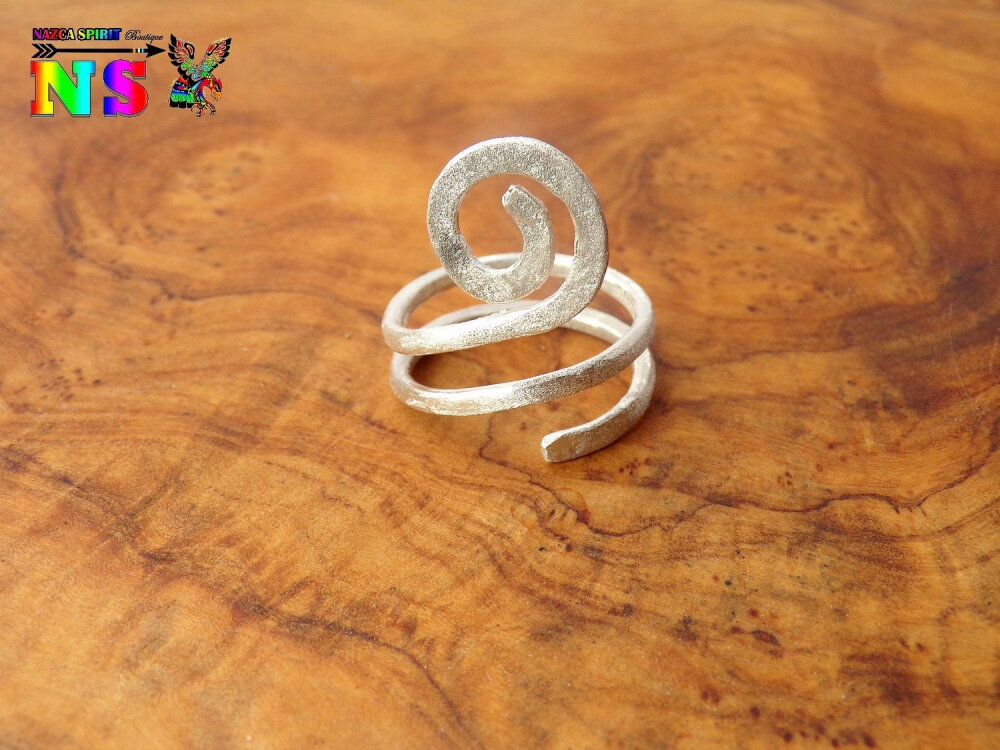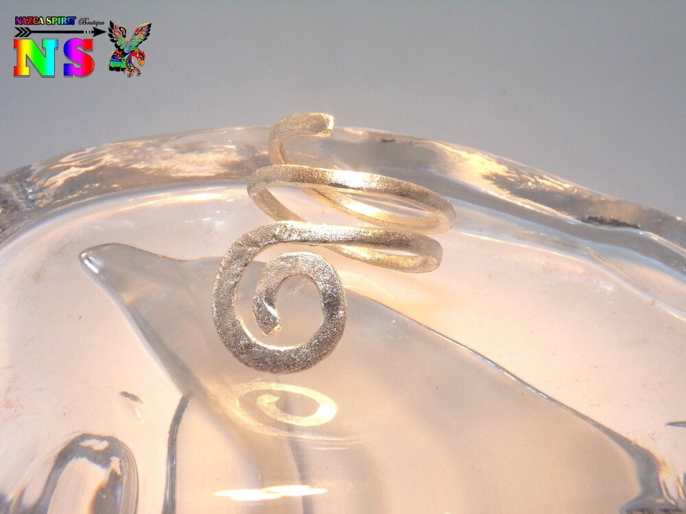 Bague ethnique ajustable en argent massif T57 / Taille US 8 - Bijou artisanal fait main - Finition argent effet diamanté - Bijou poinçonné