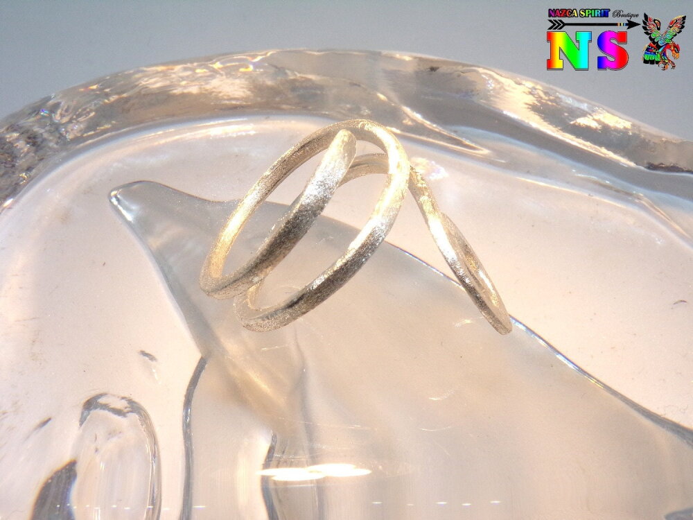 J'ai réalisé cette bague à partir de fil d'argent de 2 mm ("0.078) de diamètre que j'ai façonné à la main à l'aide de la technique du martelage. La bague a été ensuite travaillé à la Dremel pour apporter une finition diamantée. Grâce à cette technique d'usinage j'ai augmenté la brillance du bijou et j'ai apporté une touche effet "peau de pèche".