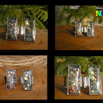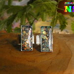 Matériau : support cuivre plaqué argent (origine : UK), poudres luminescentes, paillettes opalescentes et laser, résine cristal (Origine : Allemagne)