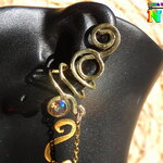 Cette bague oreille se positionne sur le cartilage. Vous pourrez la positionner en haut ou milieu de votre cartilage d'oreille. Sur le haut de la bague j'ai fixé un cristal chaton autrichien couleur Colorado Topaze Iridescent. J'ai ensuite relié à l'aide de chaîne plaqué or 18 K un pendentif en forme de spirale suspendu à la chaîne. La spirale a été réalisé à partir d'un morceau de fil de laiton or que j'ai mis en forme. La spirale a ensuite été martelé pour obtenir une spirale plane, puis poncée et ensuite polie pour obtenir à nouveau une finition or brillant.