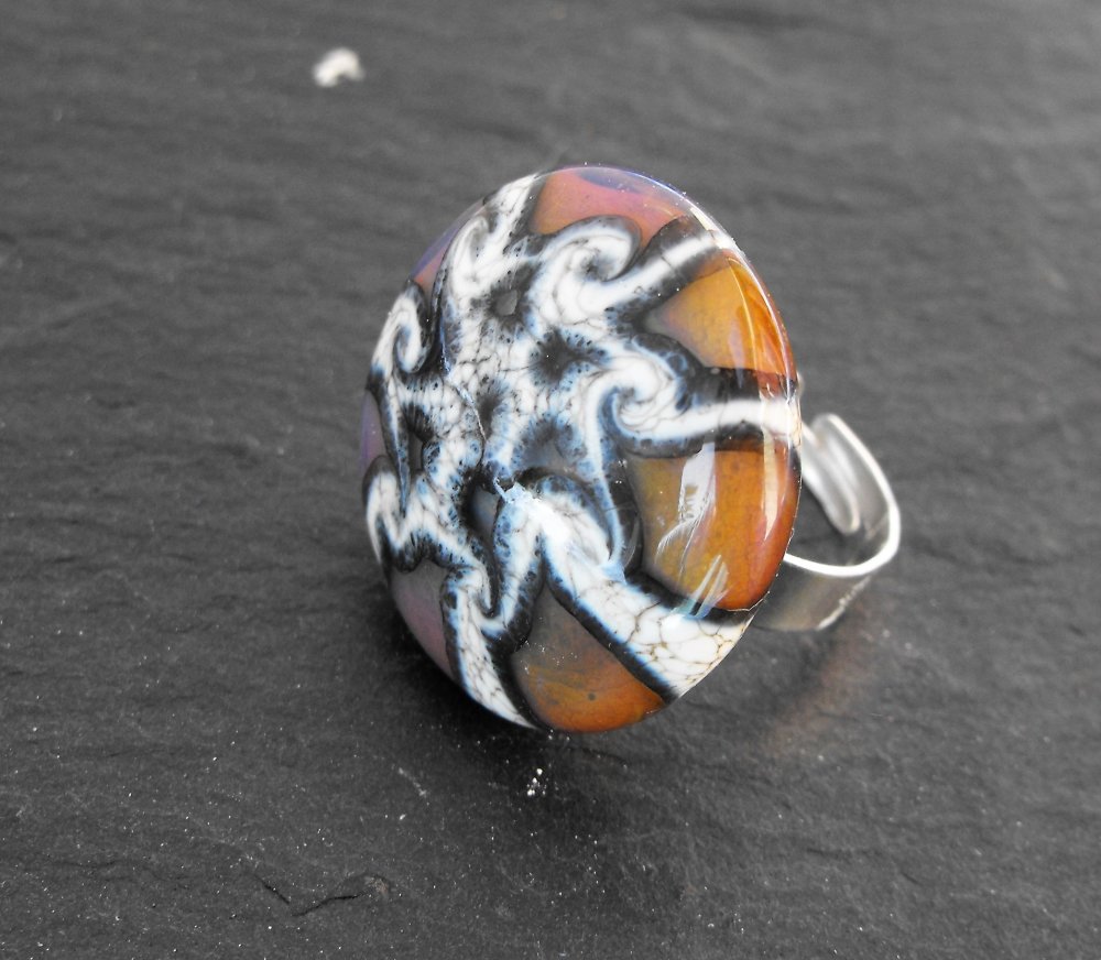 belle bague cabochon verre filé à la main par la créatrice