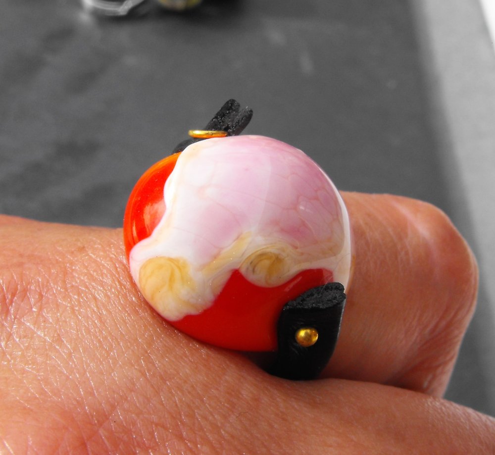 Fileuse de verre au chalumeau, je réalise moi-même la plupart des perles qui ornent mes créations. Le verre est recuit dans un four spécial de perlier pour garantir sa solidité et sa longévité.