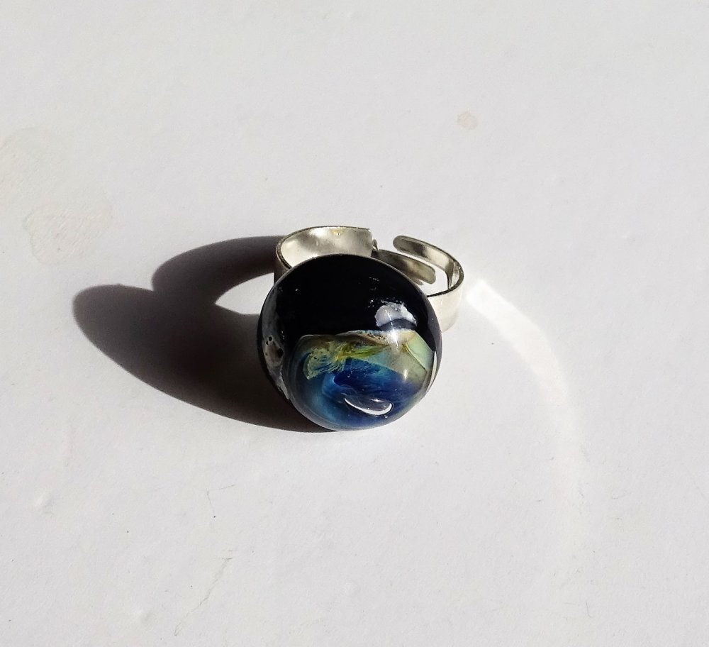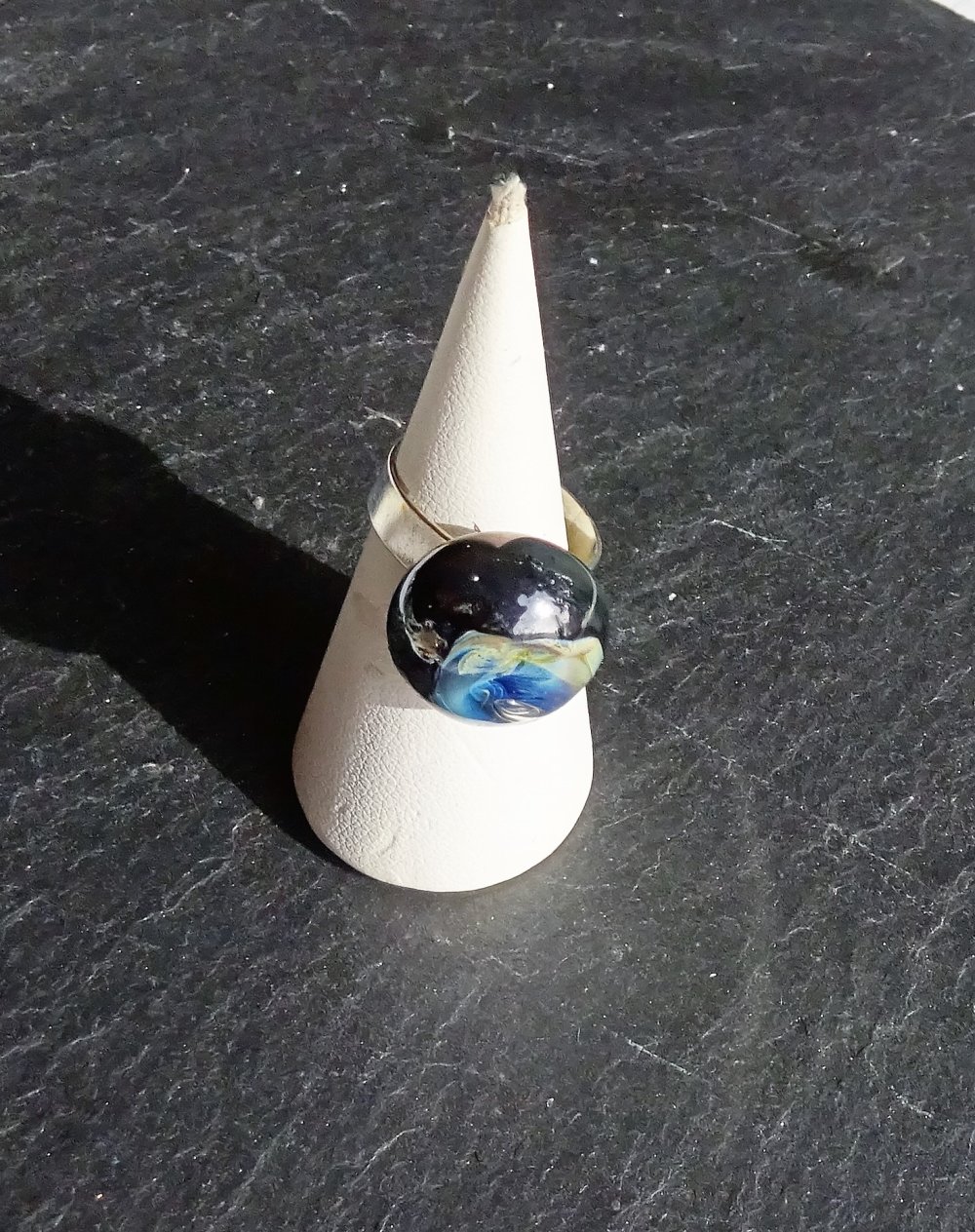 belle bague cabochon verre filé à la main par la créatrice