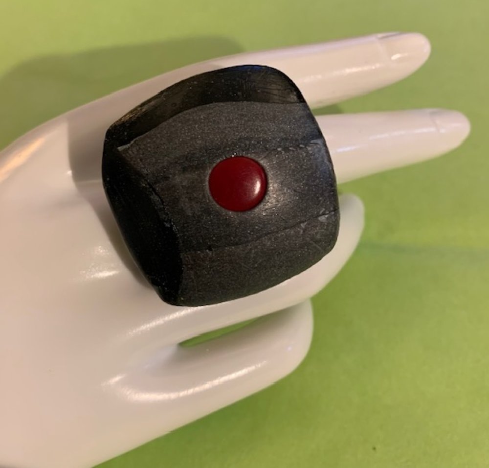 Bague carrée "Collection 50 nuances de gris" - perle rouge en ivoire végétal