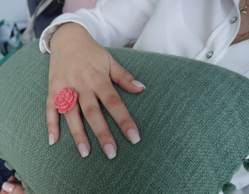 Bague CORAIL réalisée au crochet avec un fil synthétique très fin.