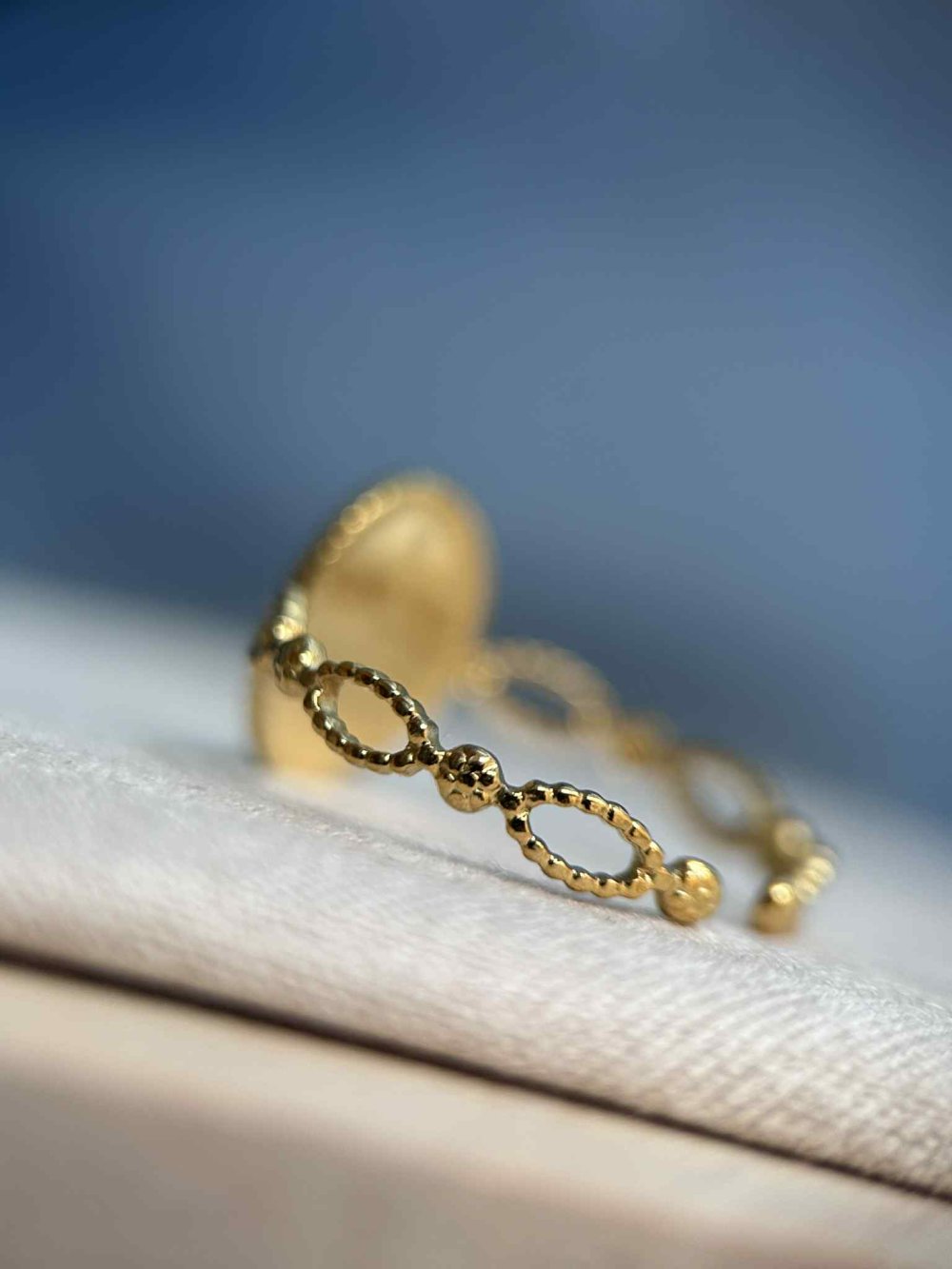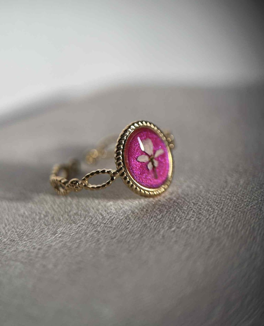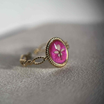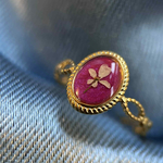 Bague doré ajustable - ovale avec fleurs séchées