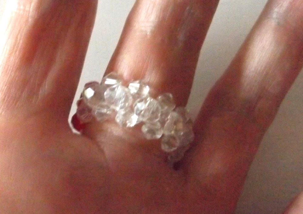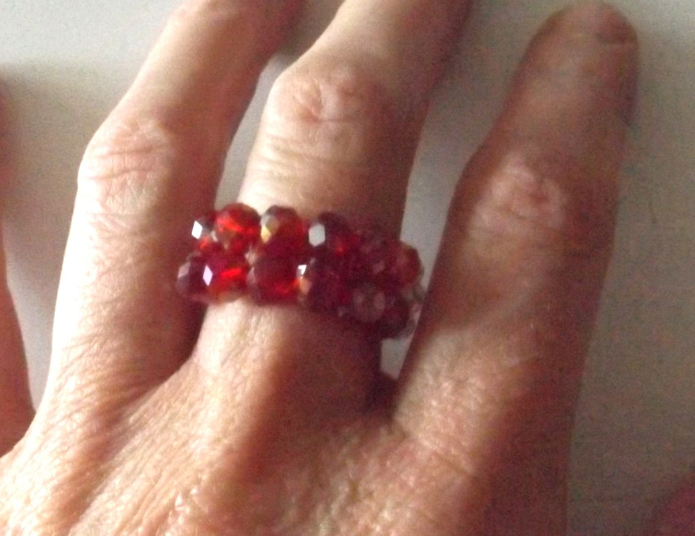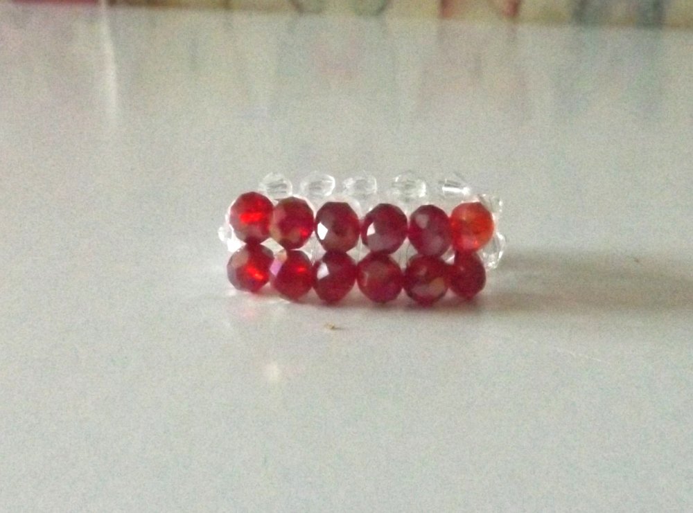 Bague toute brillante et élégante composée de perles rouges à facettes en verre et perles transparentes en verre cristal.