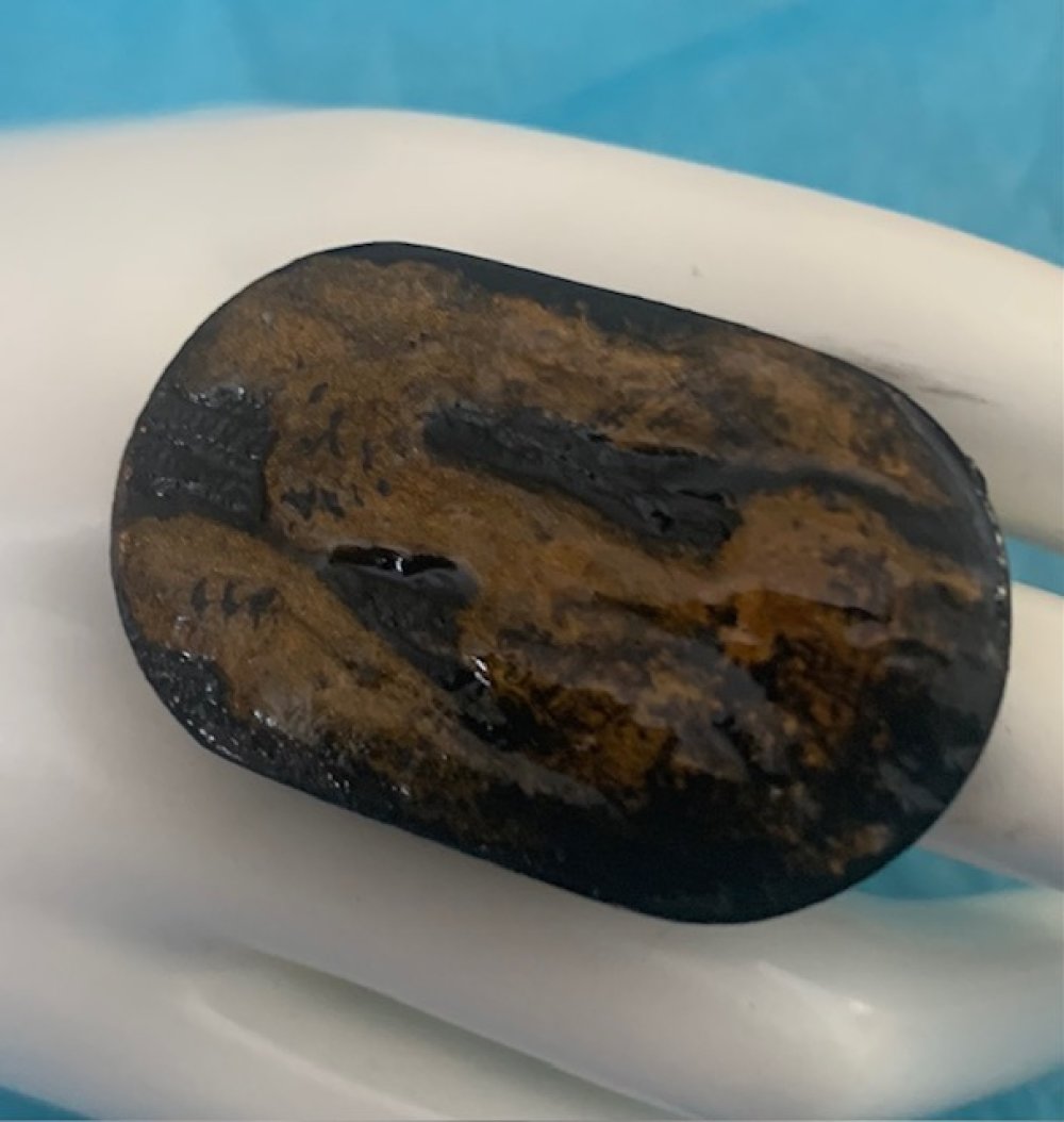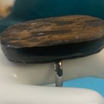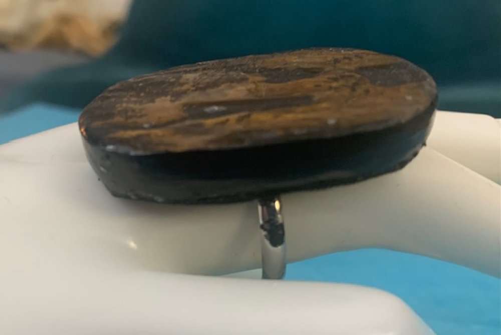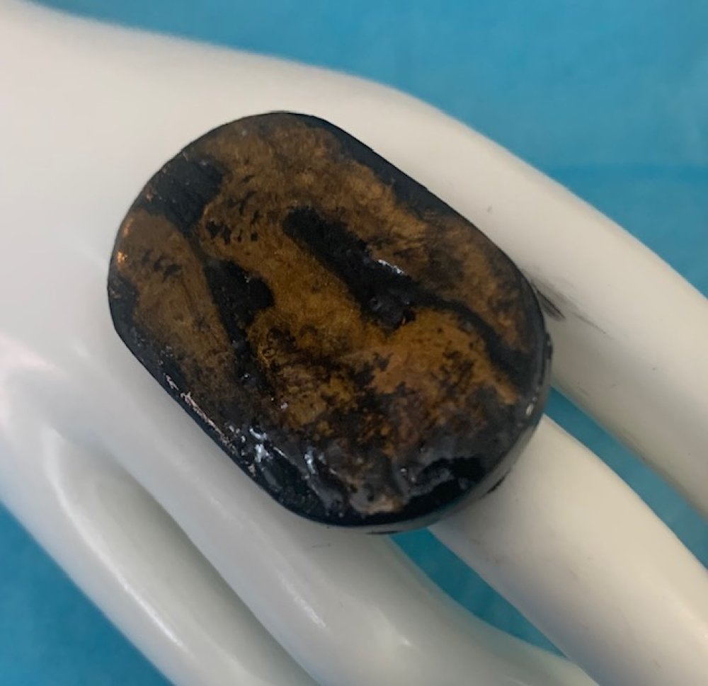 Bague en polymère ovale noire et or.