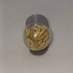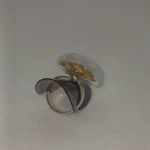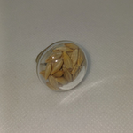 Je vous propose cette bague unique, composée d'un globe de verre soufflé en forme de dôme, rempli de graines, aux jolies couleurs blondes.