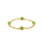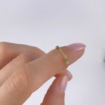 Finesse et éclat naturel s’unissent dans la bague Meira, symbole de grâce et de délicatesse. Sa fine chaînette en or laminé 14k, ponctuée de petites pierres de diopside verte, diffuse une lumière douce et végétale.