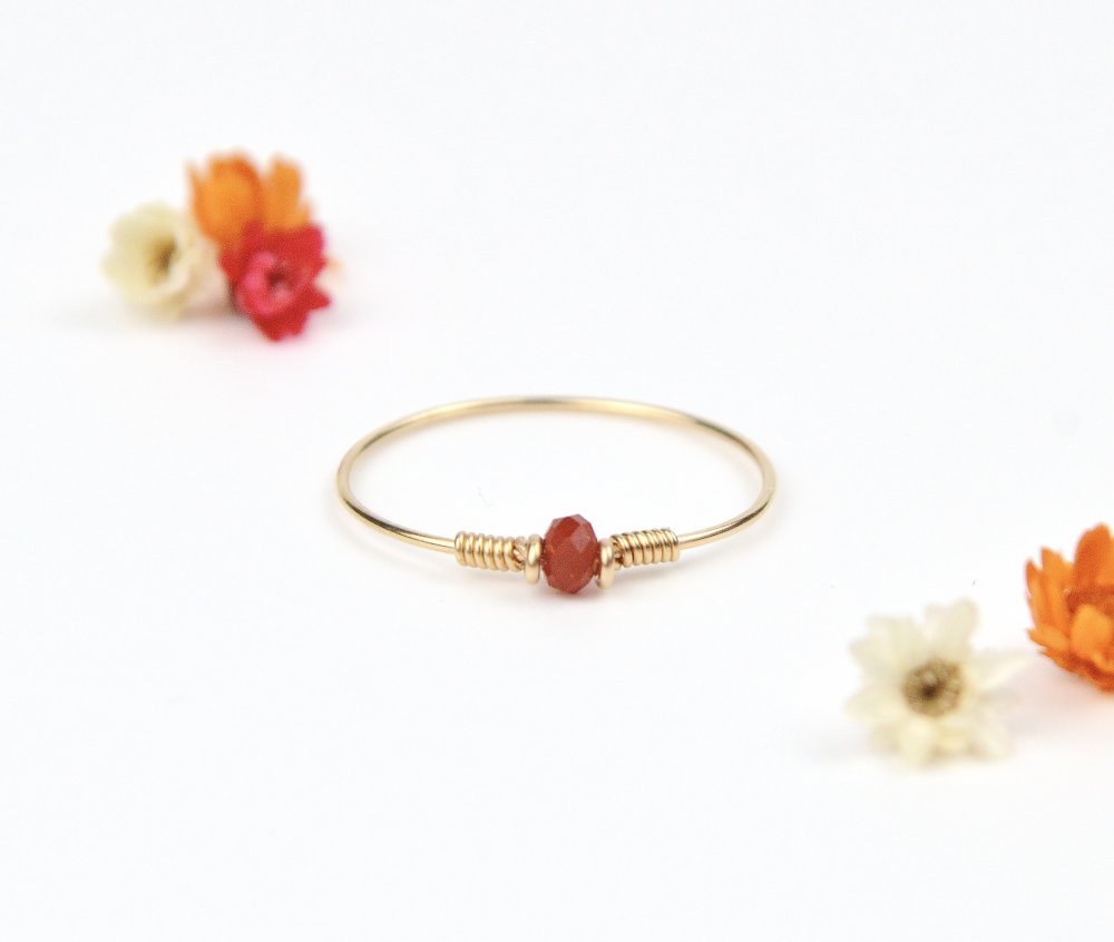 Bague fine minimaliste en or rempli 14k et cornaline - bague empilable