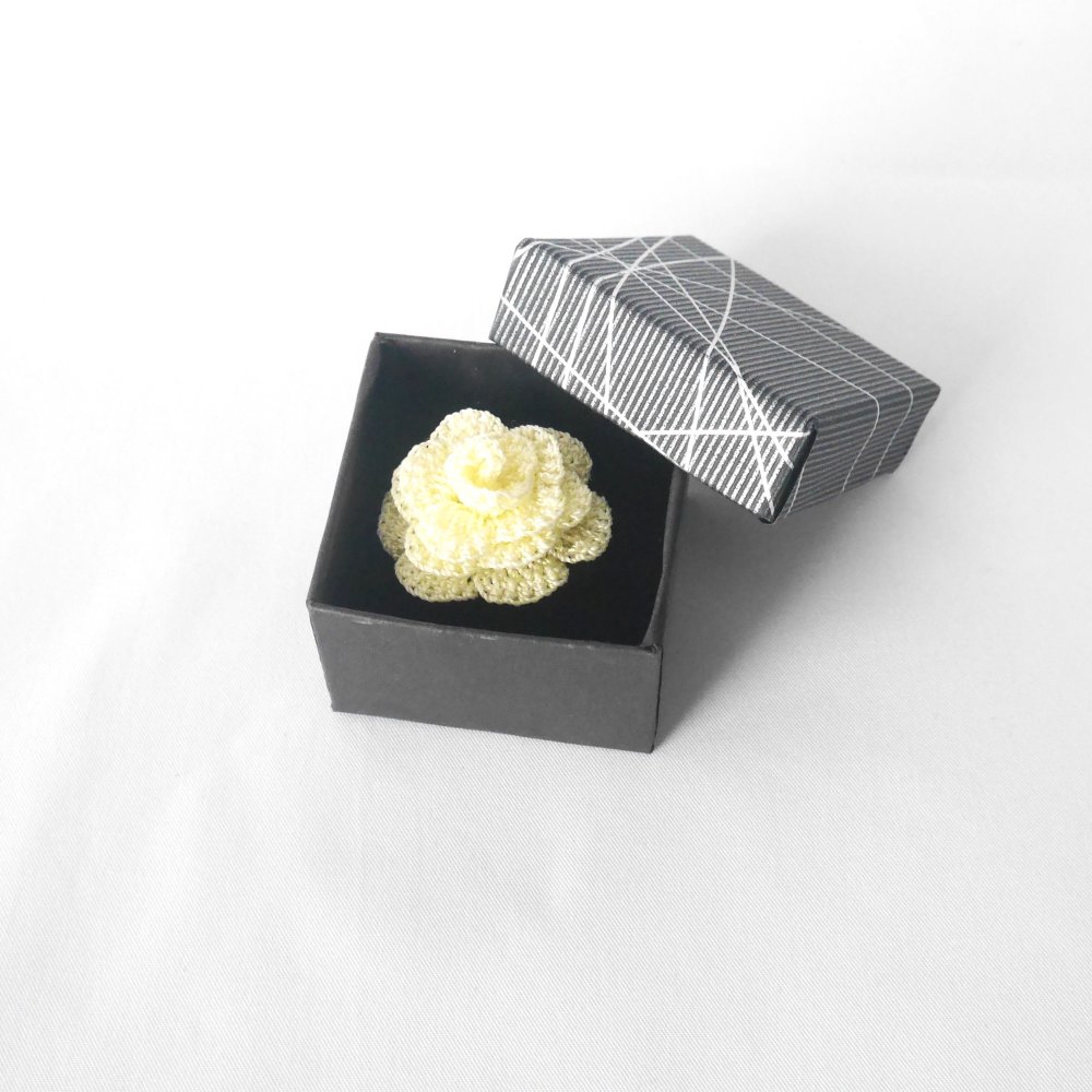 Bague JAUNE pastel réalisée au crochet avec un fil synthétique très fin.