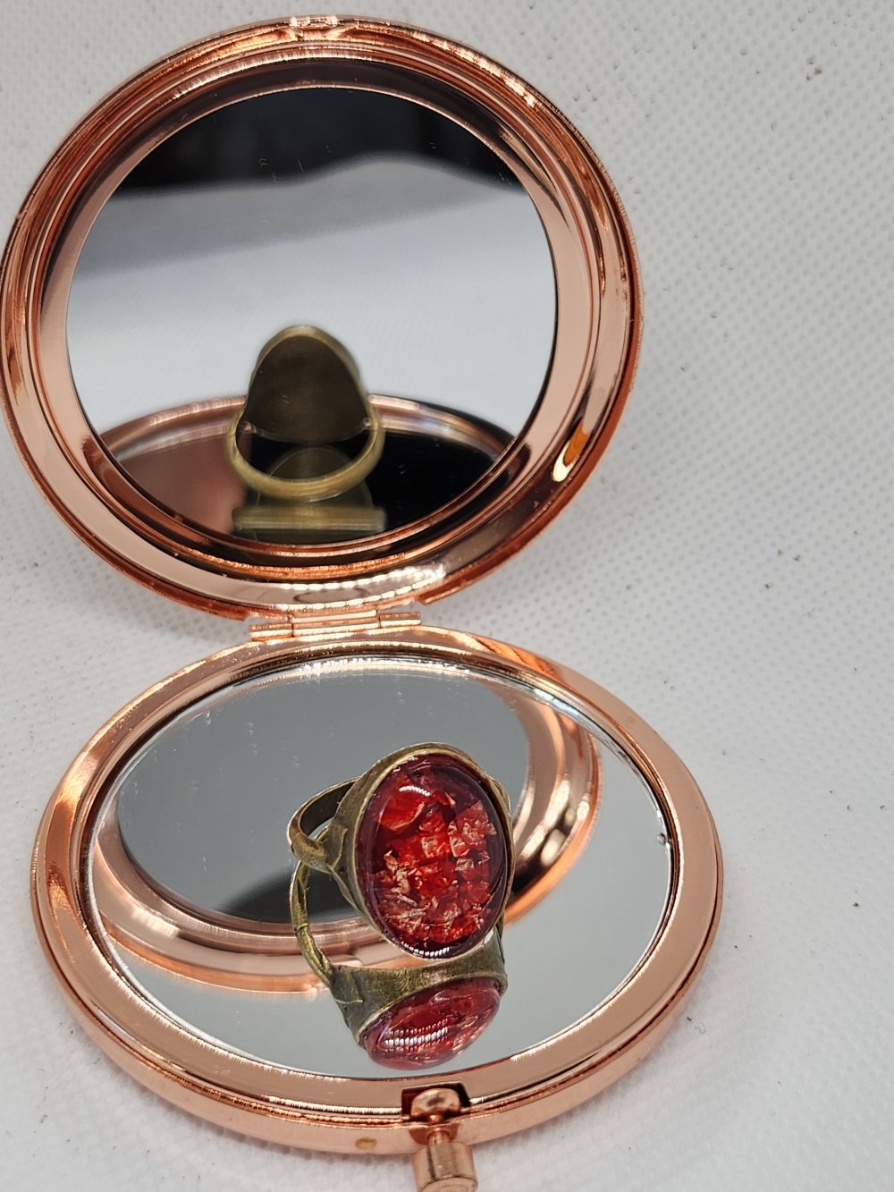 Un éclat rouge venu des cieux, reflet de la déesse de l’amour. Élégante et mystérieuse, cette bague capte la lumière comme un secret divin.
