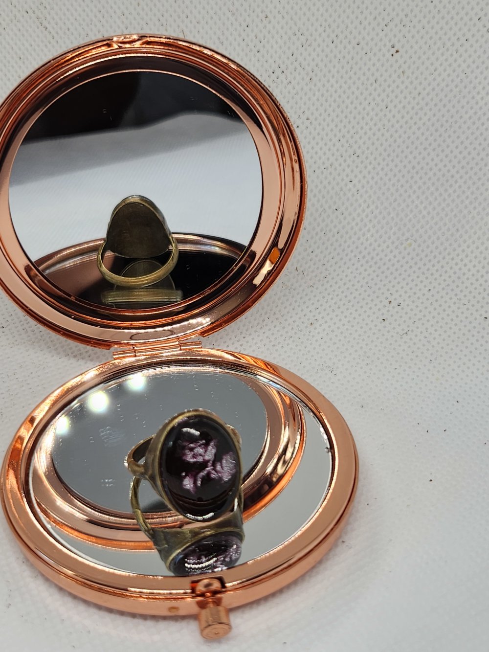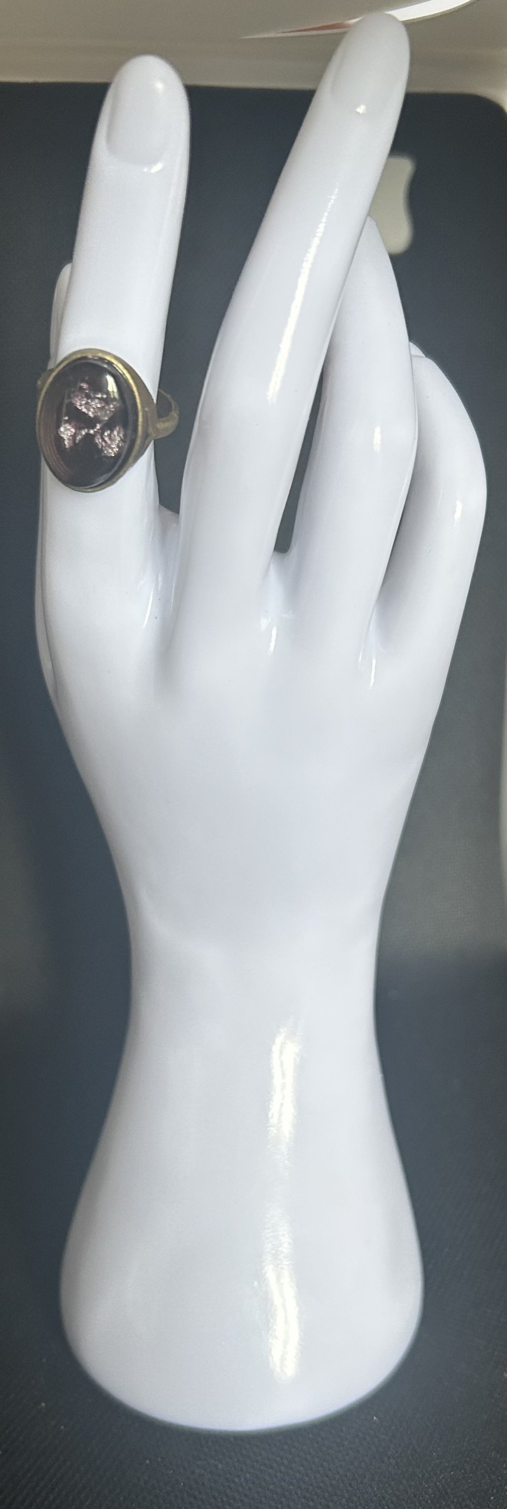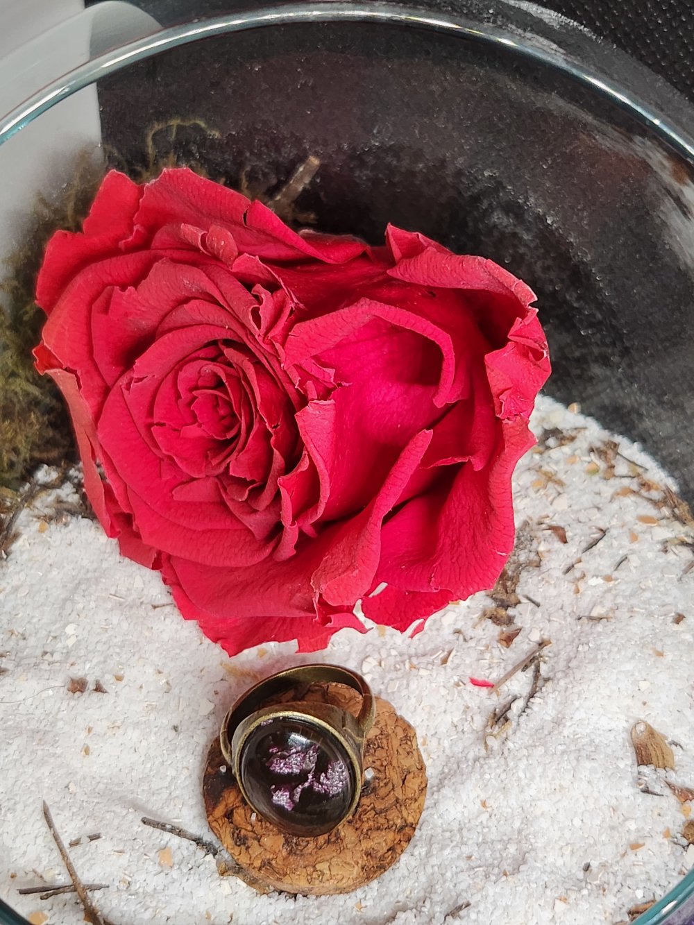 Matériaux principal Alliage zinc , résine, feuille d'or, dôme en verre, Taille avec un baguier 59- 60