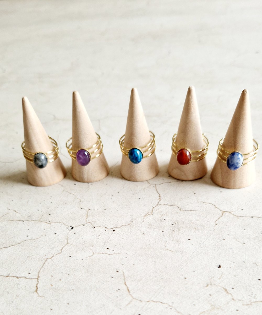 Bagues triple en acier inoxydable doré et cabochons en pierres de gemmes