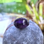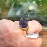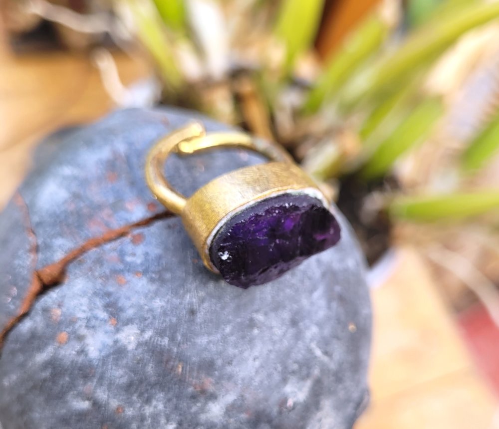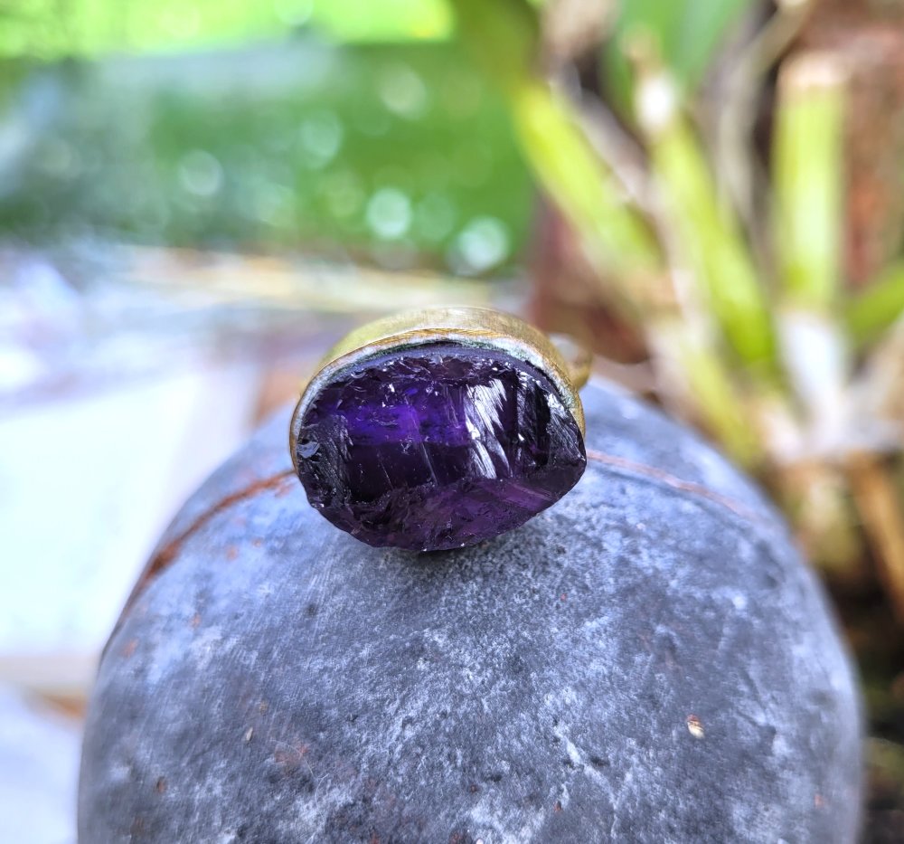Une bague laiton massif faite main, taille réglable, avec un superbe cabochon d'améthyste brute .... pour le côté vintage !!!!