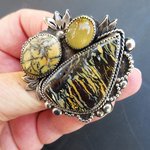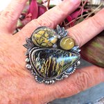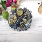 Loin du bruit de la ville, marchant dans des bois silencieux, vous pouvez entendre le murmure de la nature... : voici une incroyable bague en argent 925 , avec 3 cabochons d'opale : boulder koroit yowah pour le plus grand, dendrite et jaune pour le plus petit ... pour le côté vintage !!!