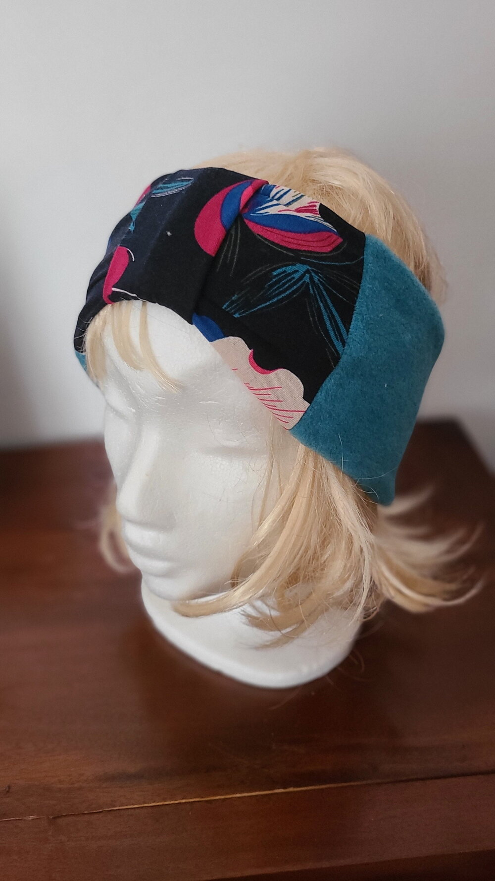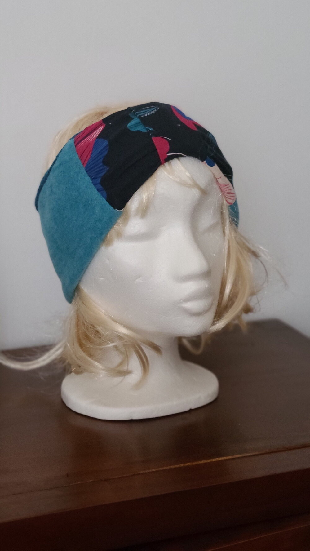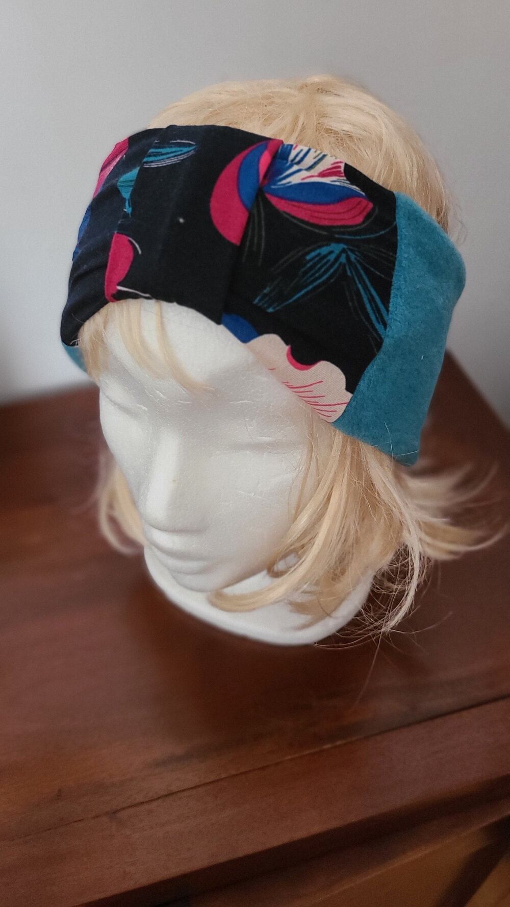 Pour avoir chaud aux oreilles et la tête tout en étant chic, voici le bandeau qu il vous faut. Il reprend les matériaux du snood turquoise et maille bleu vert. il est chaud et confortable. il est réversible.