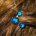 Particularité de mes cabochons : J'ai intégré lors de la réalisation de la coloration des particules holographiques et iridescentes pour intensifier les effets lumineux des cabochons sous la lumière solaire ou artificielle. Les couleurs vibrantes de mes cabochons évoluent en fonction de leur orientation sous la lumière solaire.