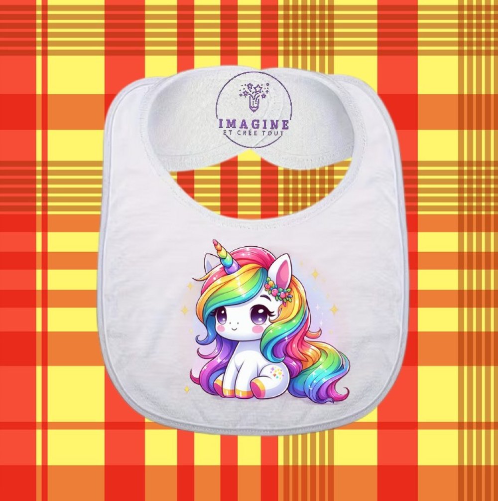Bavoir - sublimation - impression infusible ink - creative art - beautiful baby - bébé unicorne - multicolores