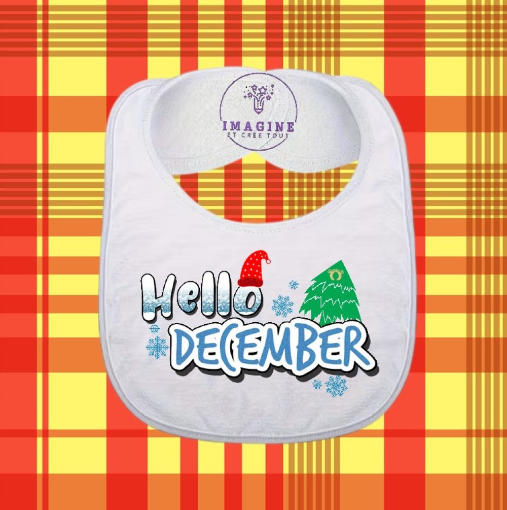 Bavoir - sublimation - impression infusible ink - cute hello december - bonjour décembre - sapin - texte - flocons neige