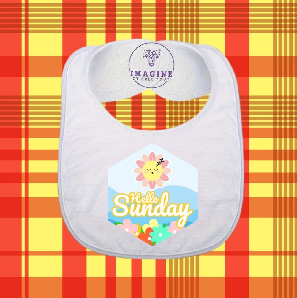 Bavoir - sublimation - impression infusible ink - hello sunday - bonjour dimanche - jour de la semaine - week-end