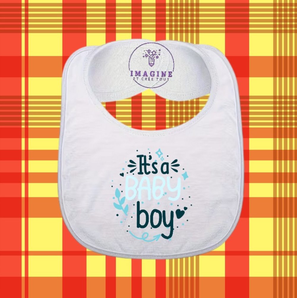 Bavoir - sublimation - impression infusible ink - it's a baby boy - c'est un garçon - révélation - personnalisation