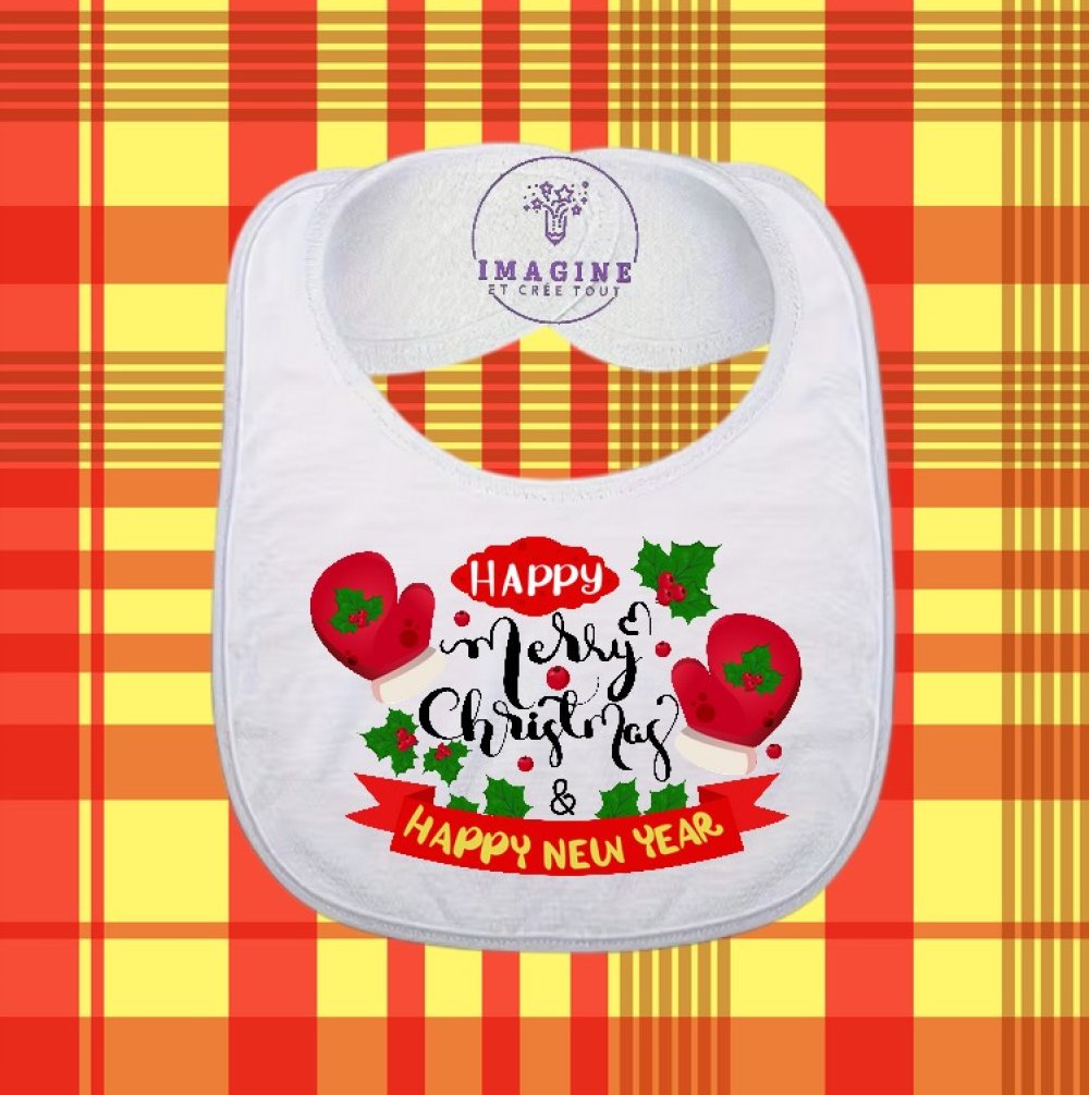 Bavoir - sublimation - impression infusible ink - merry christmas and happy year - joyeux noël - houx - bannière
