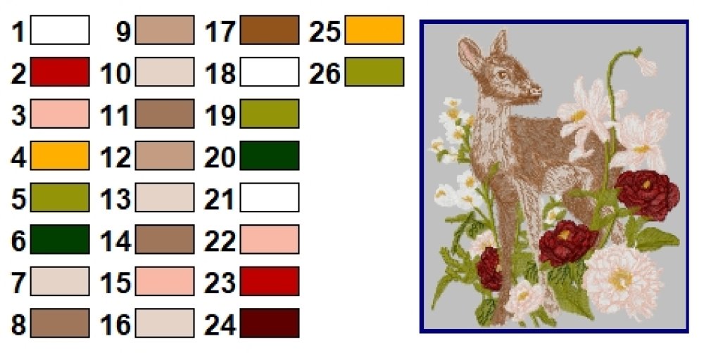 Avec le fichier je mets l'image avec l'ordre des couleurs en jpg car certains logiciels et machines changent les couleurs bien noter vos couleurs de fils choisis dans l'ordre ou ils passent à la broderie car souvent les machines mélangent les dégradés (exemple le marron clair le marron moyen et le marron foncé elles vont annoncer un marron foncé alors que c'est un marron moyen , elles vont mettre une rose alors que c'est un marron etc...)
