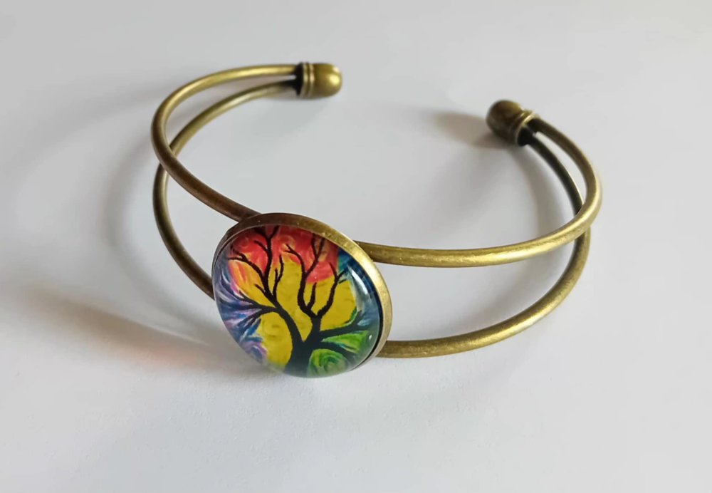 Ce bracelet jonc double met en lumière un arbre de vie aux couleurs arc-en-ciel, symbole de vitalité, de créativité et de joie. Chaque teinte apporte sa propre énergie, créant un bijou lumineux et expressif qui attire naturellement le regard.
