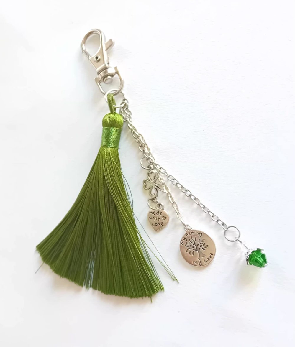 Pompon : Fil de soie vert vif.