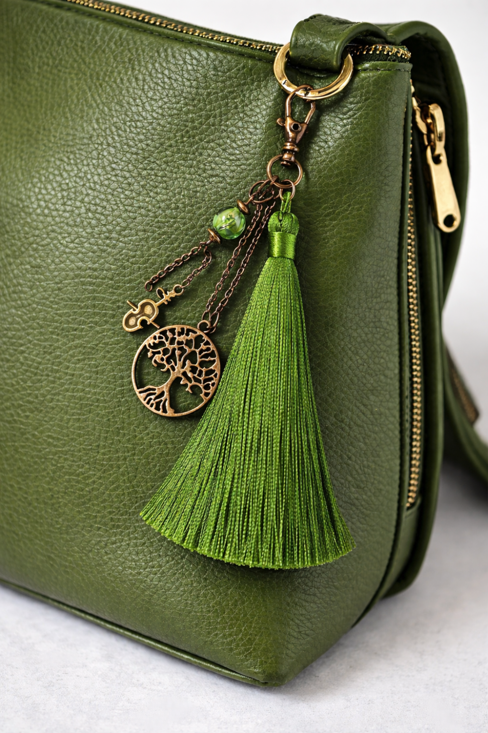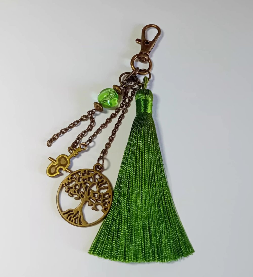 Le Pompon : Un pompon généreux en fil de soie vert émeraude, évoquant la fraîcheur de la forêt.