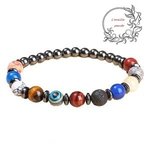 Bracelet élastique réaliser avec des perles rondes "système solaire" et des perles hématites.