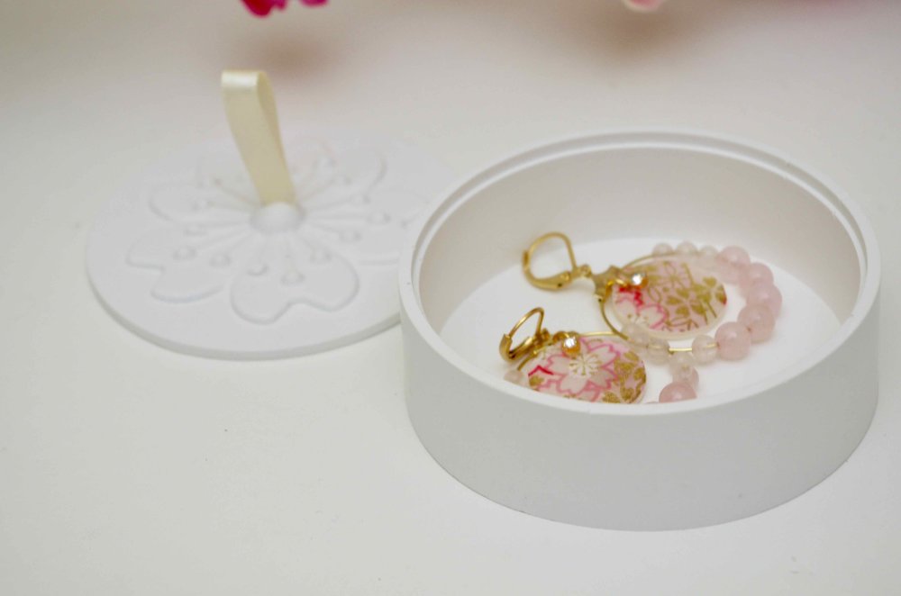 Boîte à bijoux en Raysin avec son couvercle fleuri , boîte de rangement faite main
