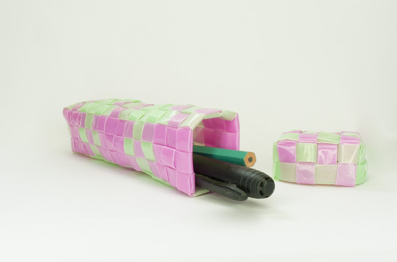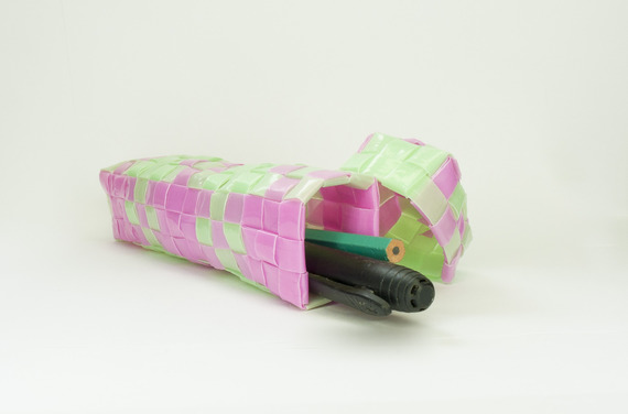 Boîte confectionnée en pailles à boire tissées à la main, sans aucune colle ni agrafe.