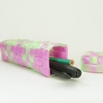 En forme de long rectangle avec son couvercle assorti, elle peut contenir des crayons et trouvera sa place dans un cartable ou un sac.