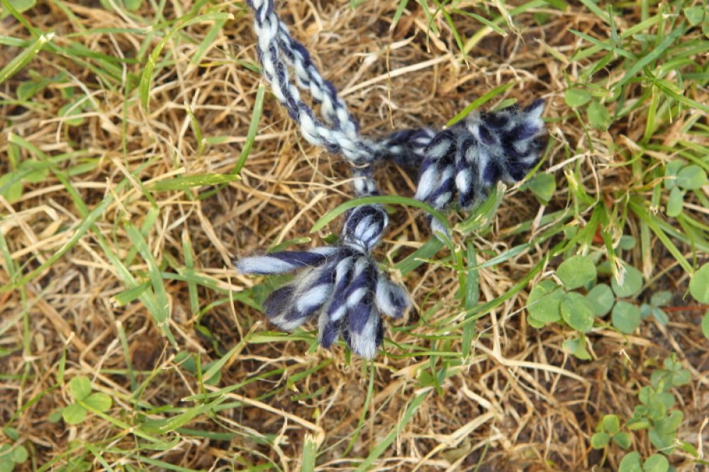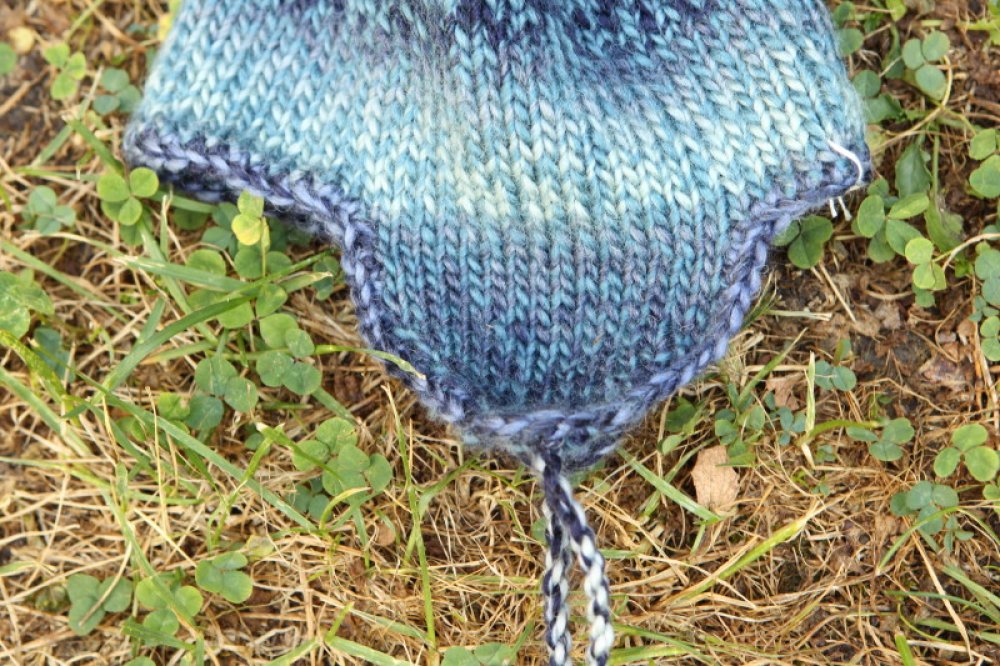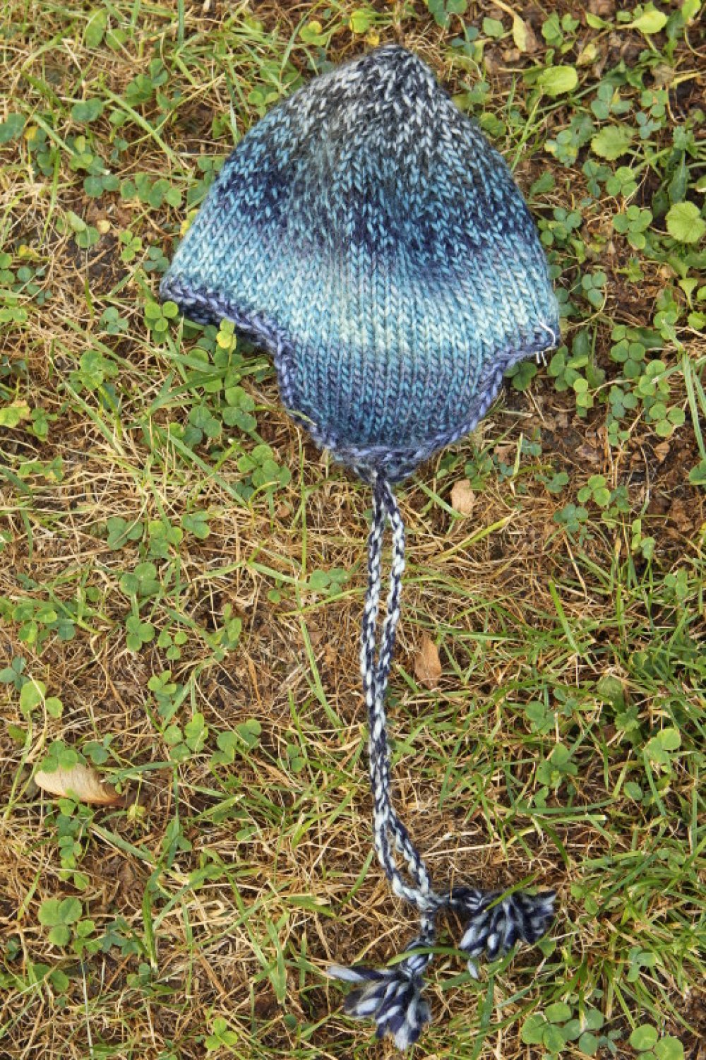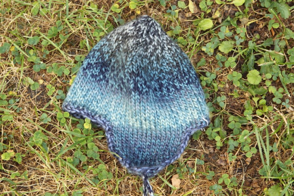 Il se termine par deux cordons à pompons qu'il est possible de nouer pouer maintenir le bonnet bien en place.