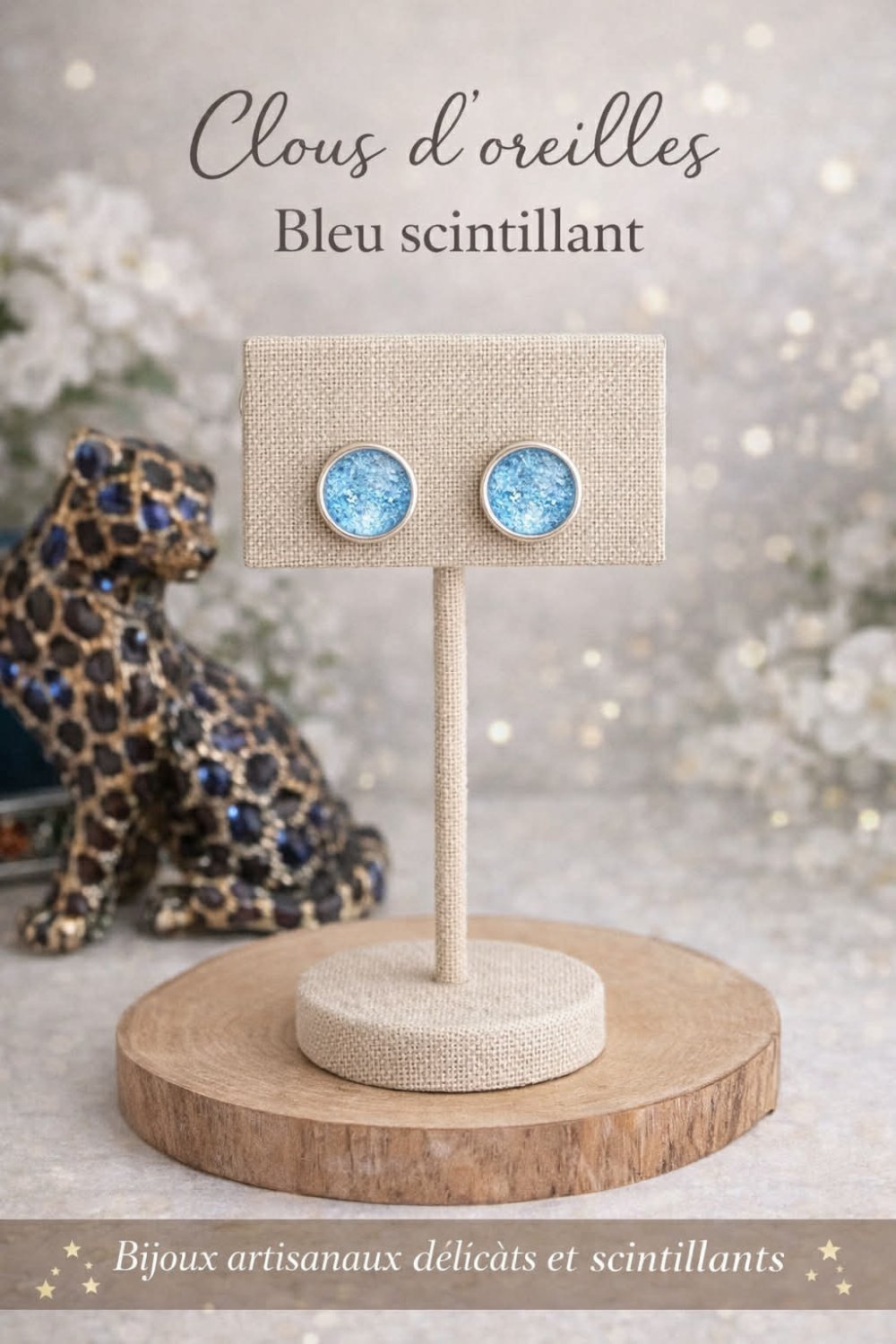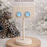 Voici une jolie paire de boucle d'oreille fantaisie de couleur pailleté gris bleu cabochon de 10mm avec son attache en argent 925.