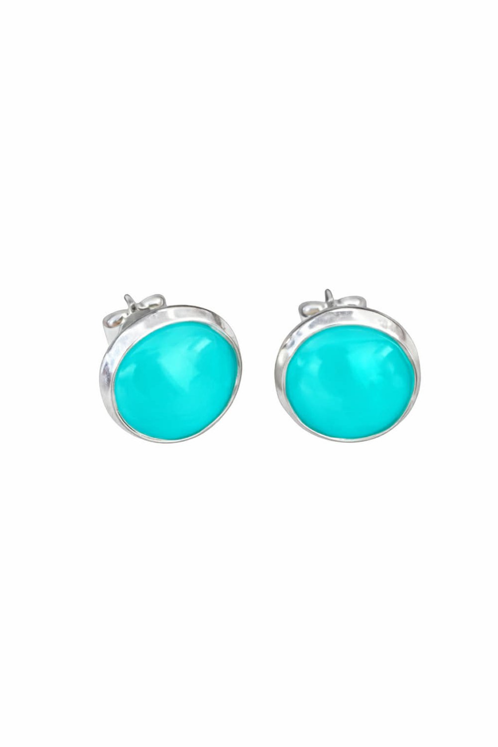 Voici une jolie paire de boucle d'oreille fantaisie de couleur vert d'eau cabochon de 10mm avec son attache en argent 925.