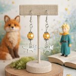 Boucle d'oreille fantaisie avec attache en argent 925 accompagné de deux perle jaune nacré .
