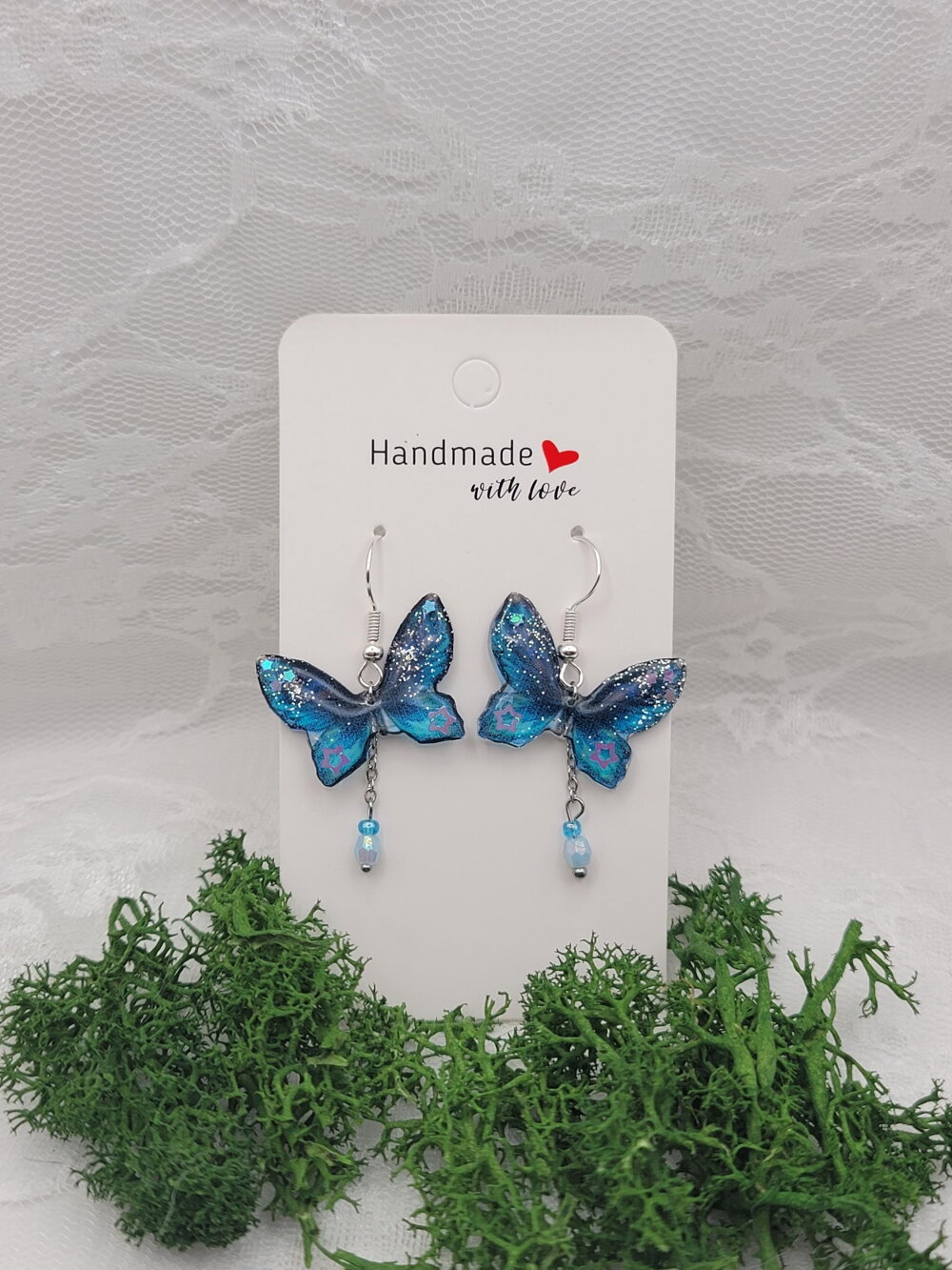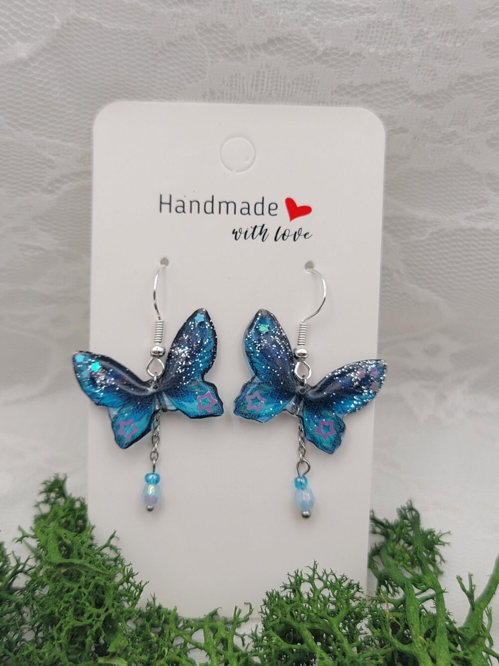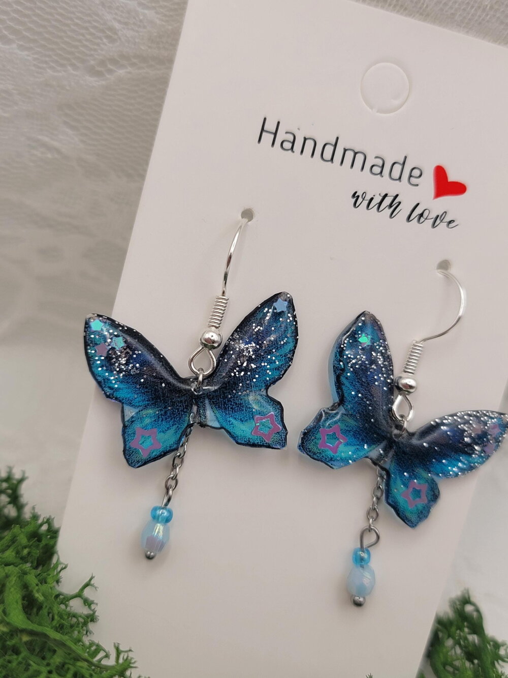 Boucles d'oreilles aile de fée elfique en argent fait main , boucles d oreilles aile papillon fée en résine,idée cadeau pièce unique