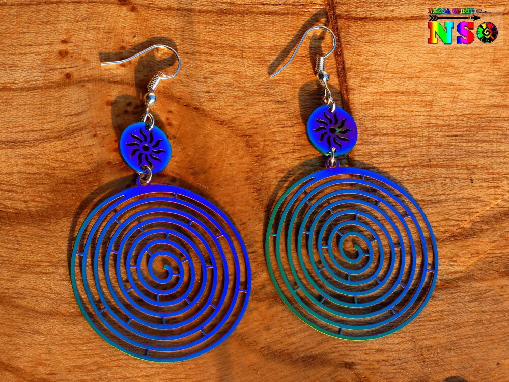 7.5 cm de long (grande spirale et soleil amérindien en acier titane multicolore)