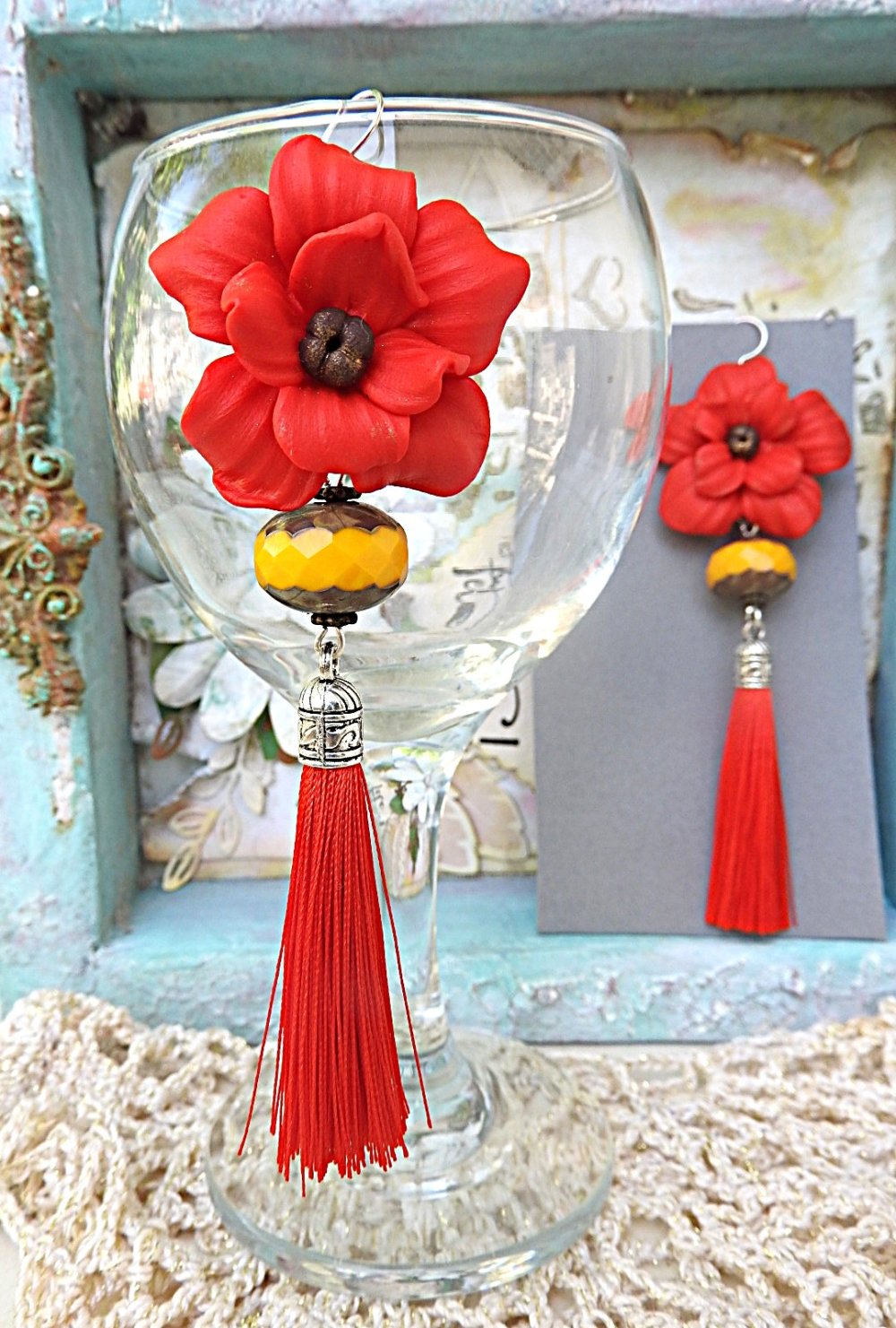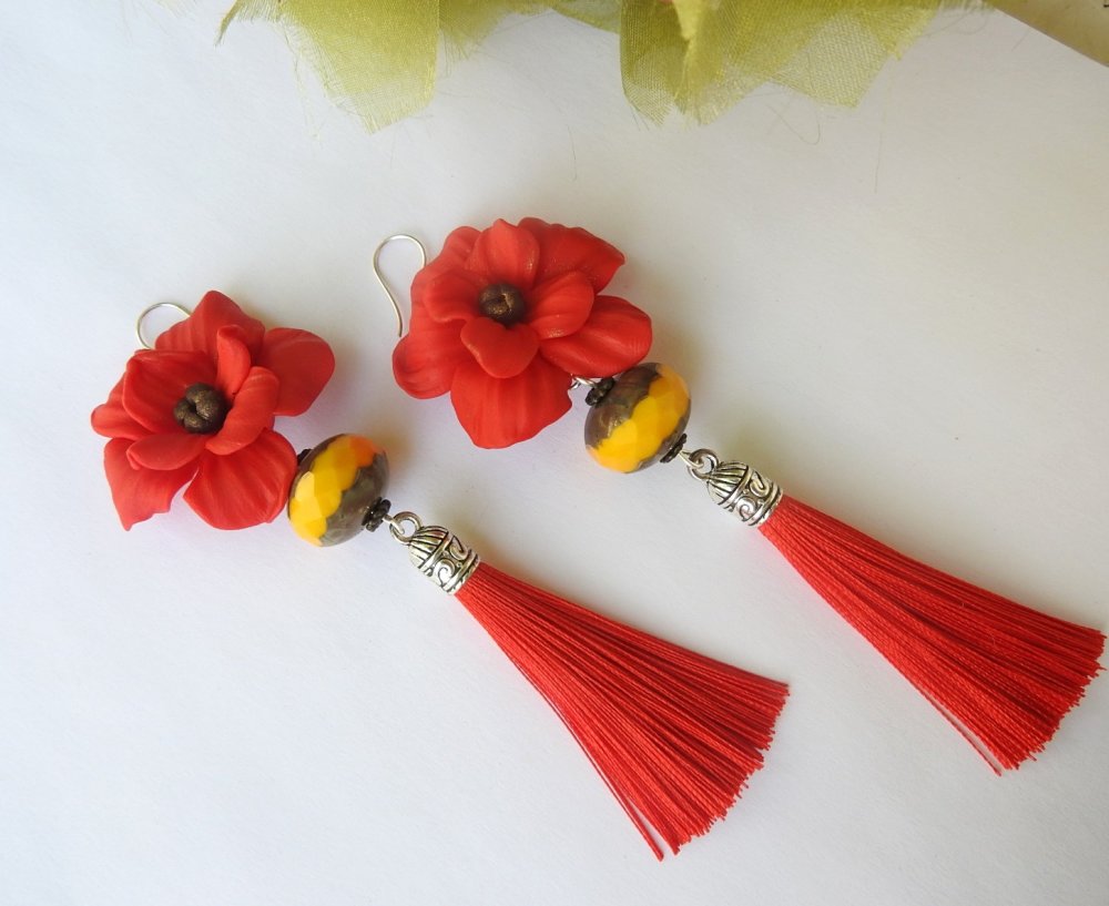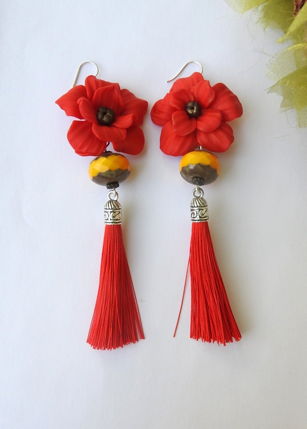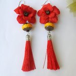 boucles d'oreilles avec les fleurs de coquelicots, fait main dans mon atelier. Longueur 12cm.