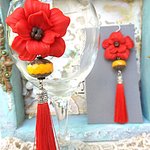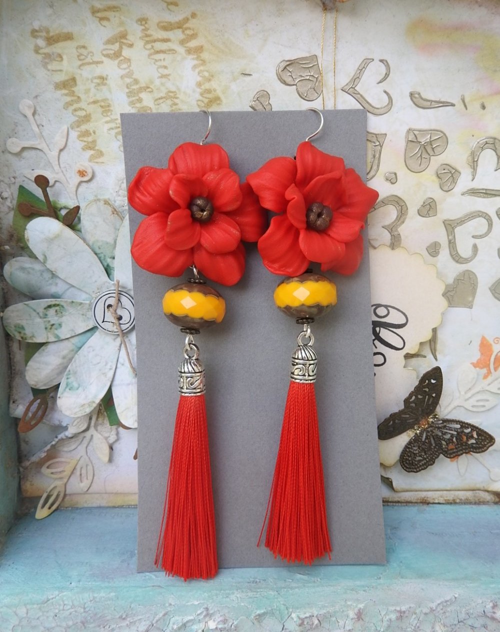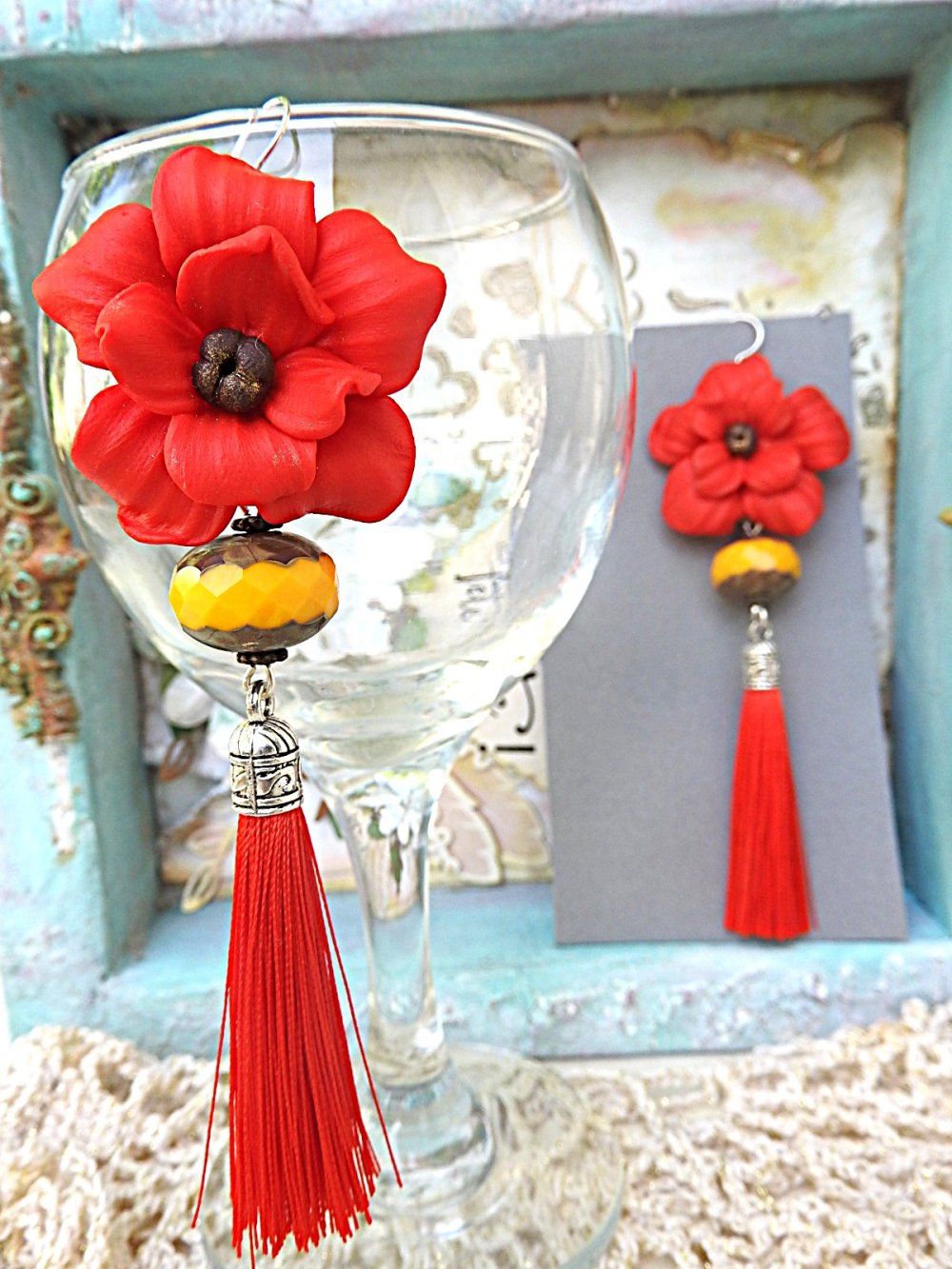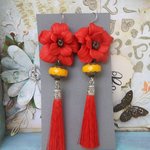 boucles d'oreilles avec les fleurs de coquelicots, fait main dans mon atelier. Longueur 12cm
