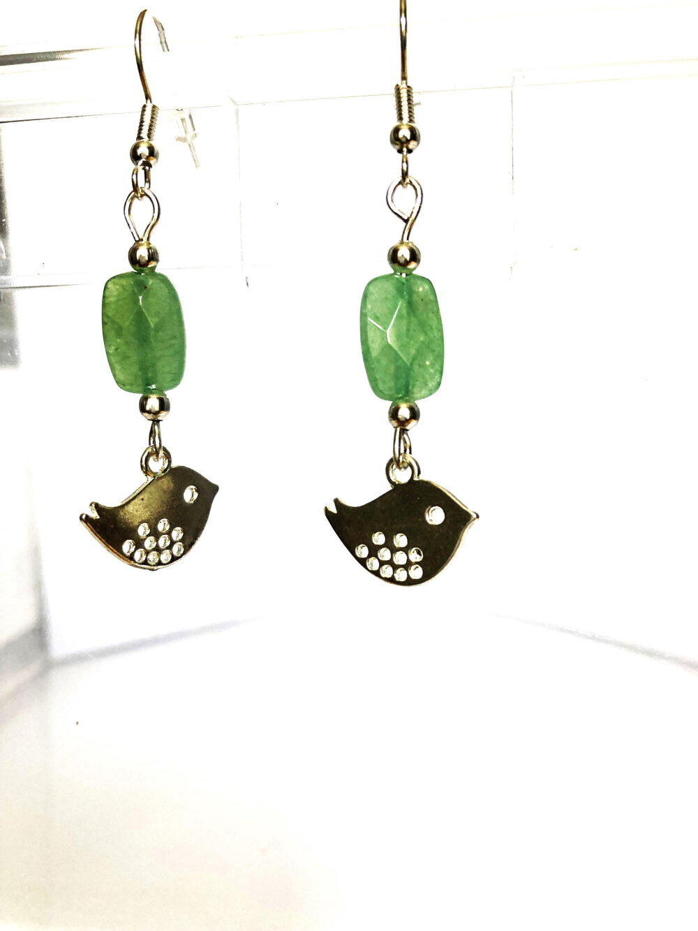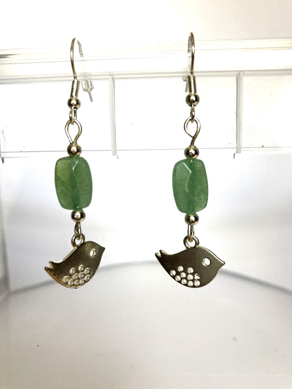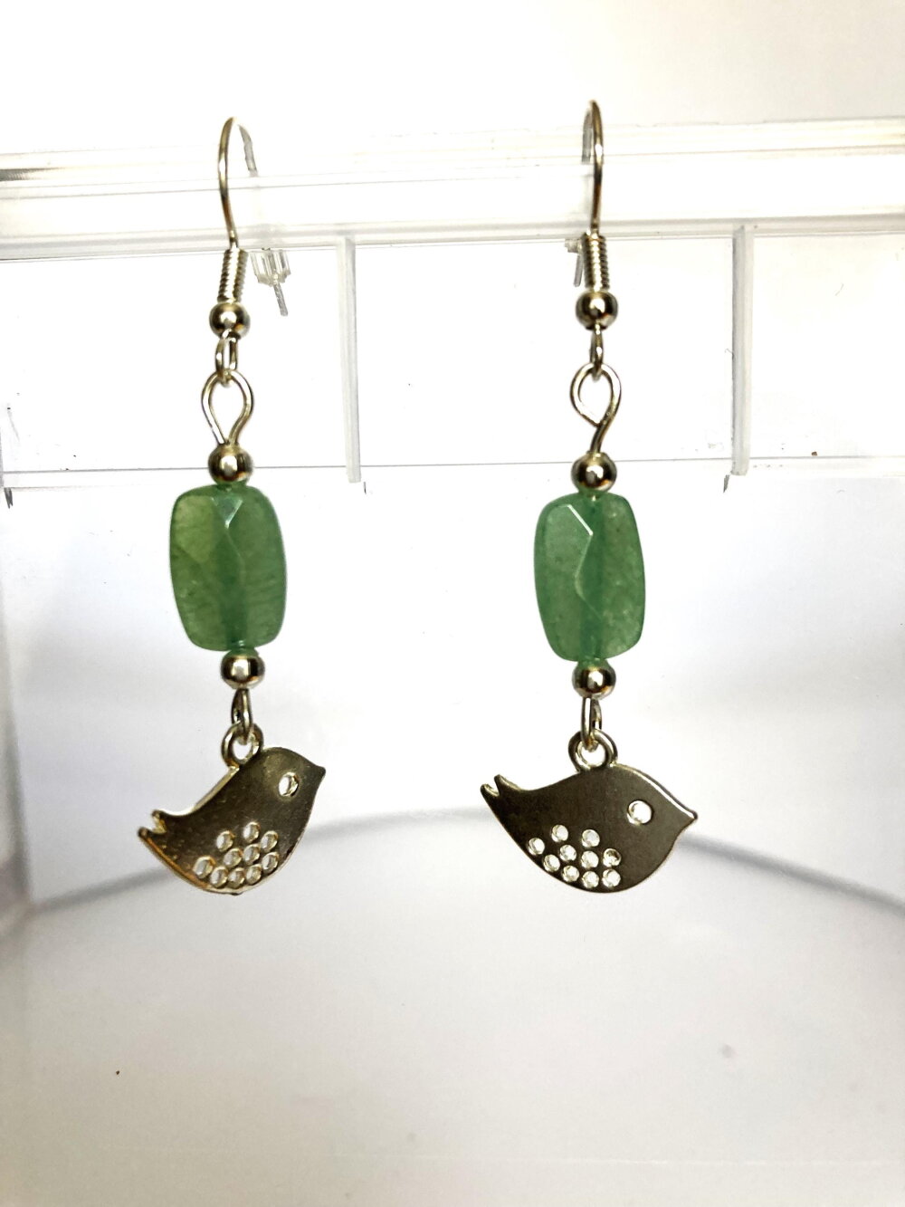 Boucles d'oreilles aventurine et oiseau bijou femme