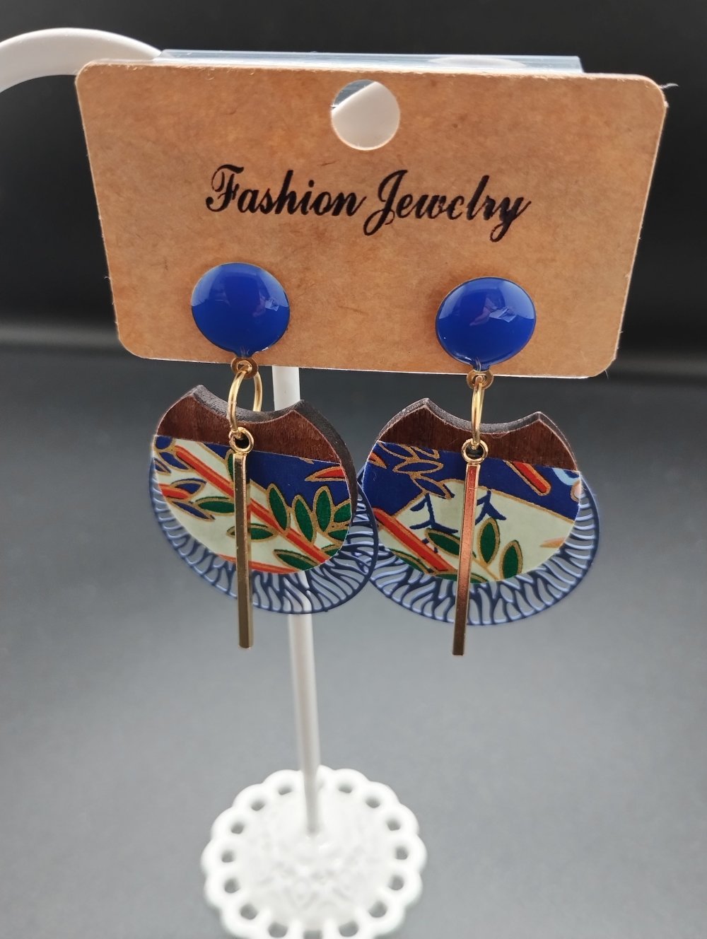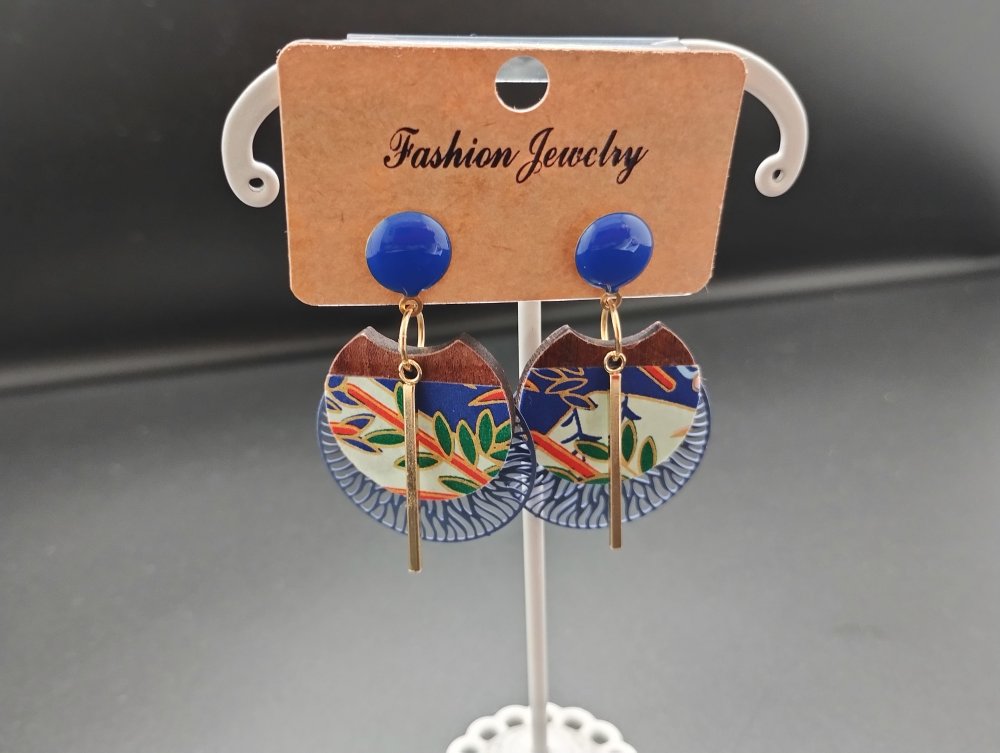 boucles d'oreilles pendantes tons bleus