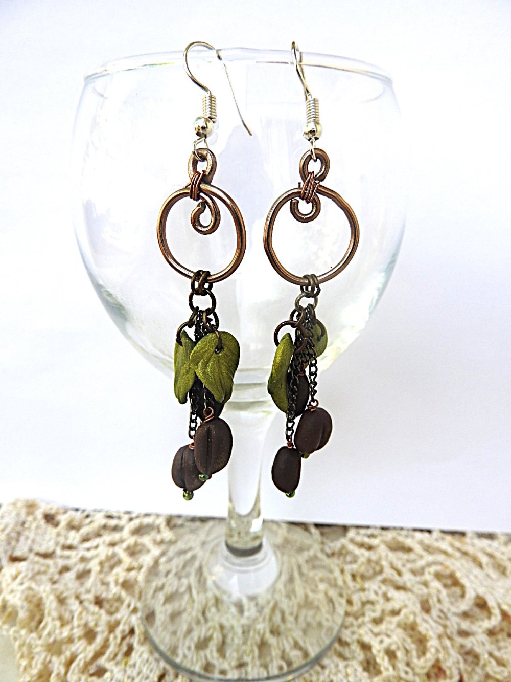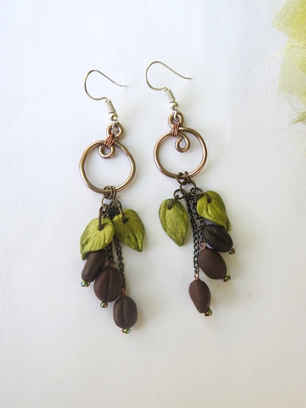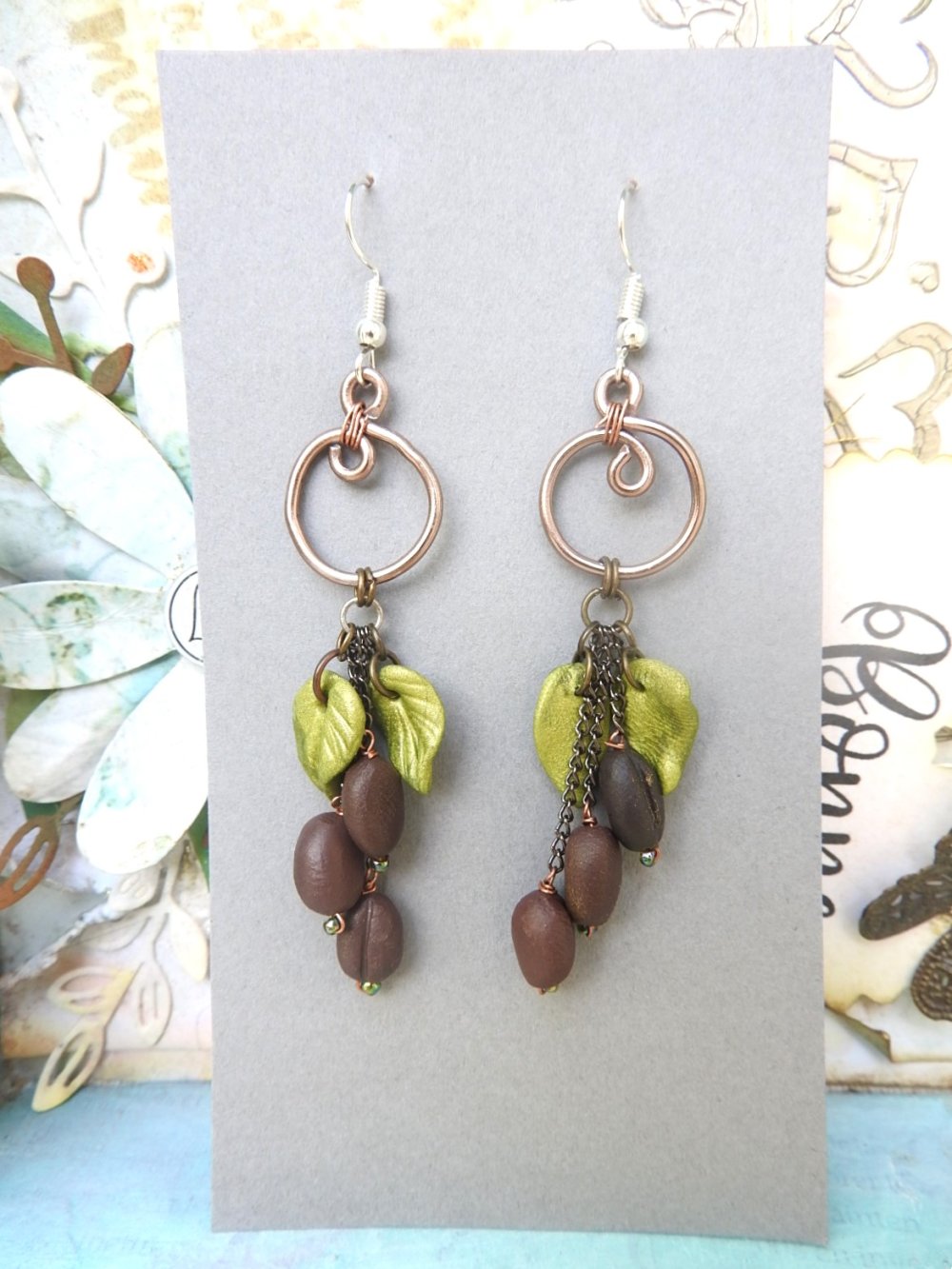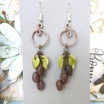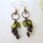 boucles d oreilles café, creation unique, fait main, longueur 8cm.