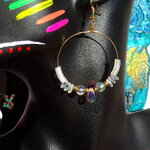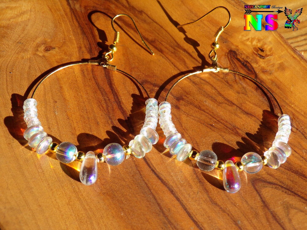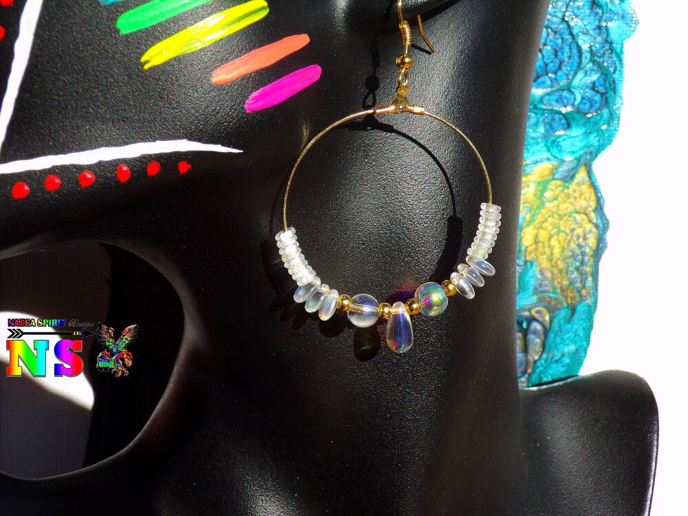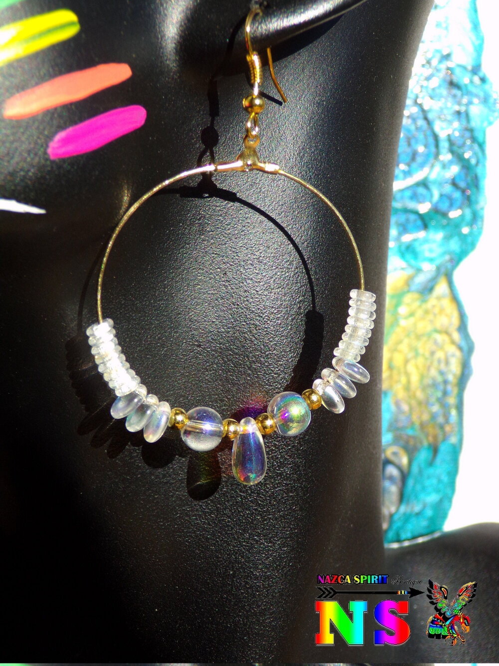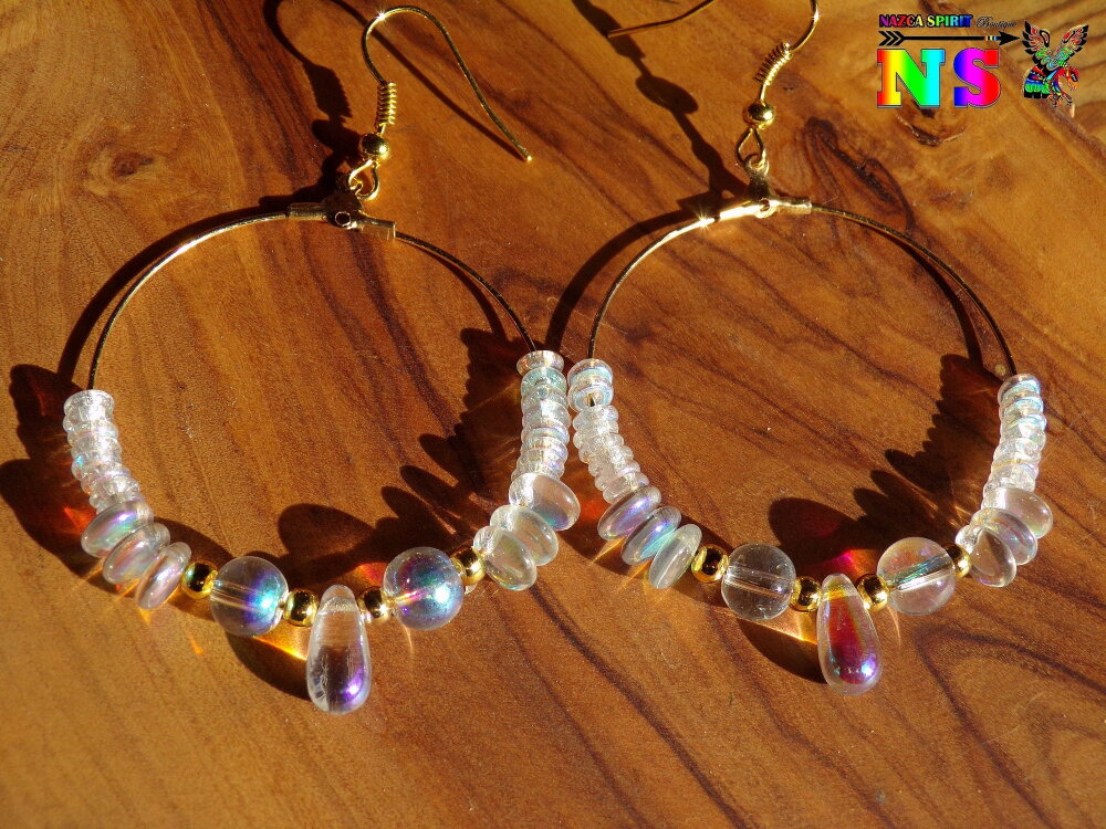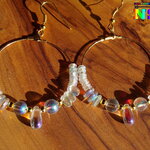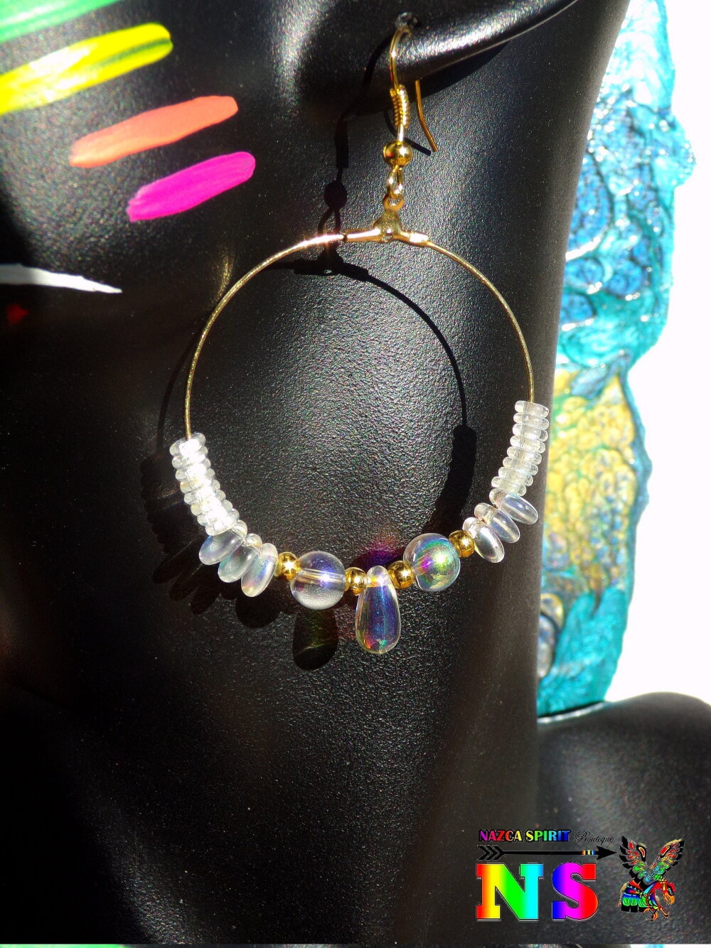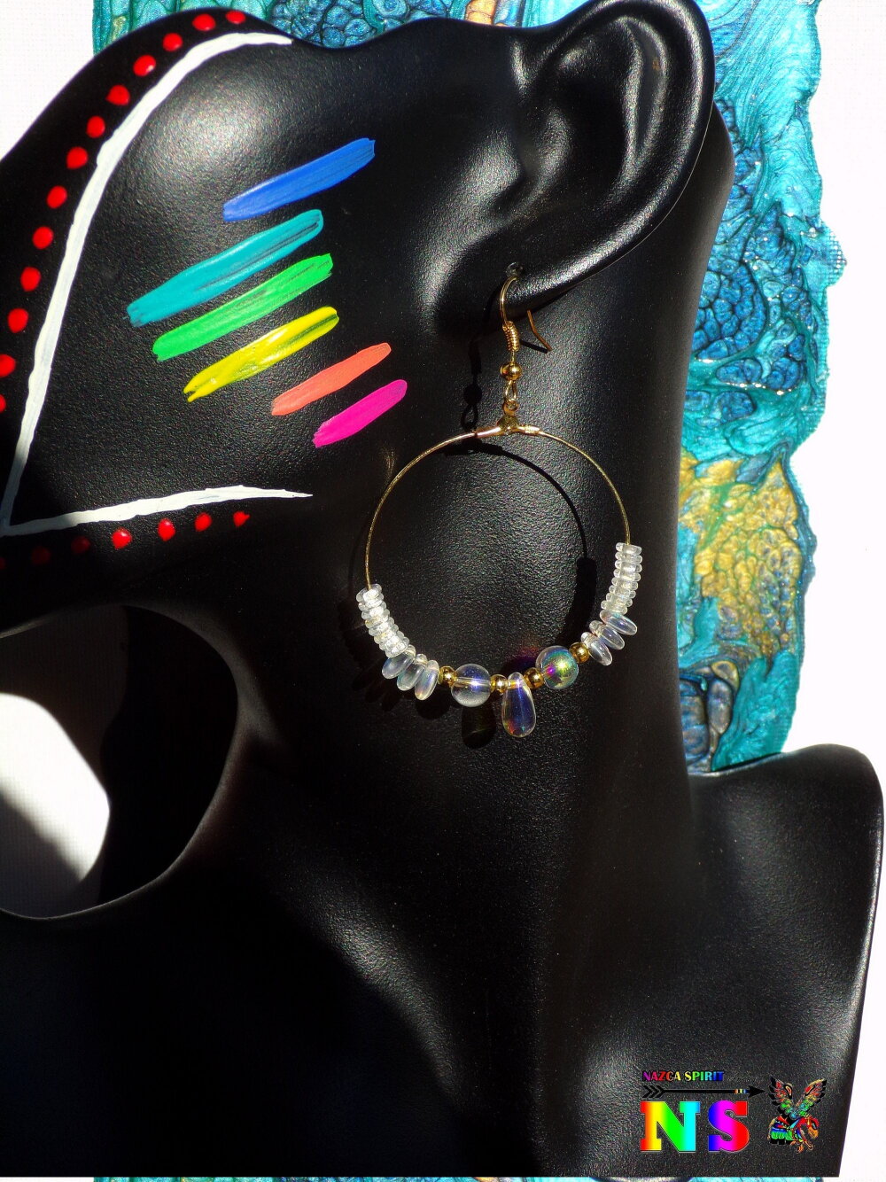 Boucles d'oreilles Créoles Boho Bohème en Laiton Plaqué Or - Bijou pour femme - Création artisanale - Perles cristal bohème aurore boréale