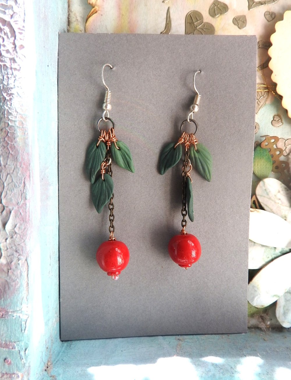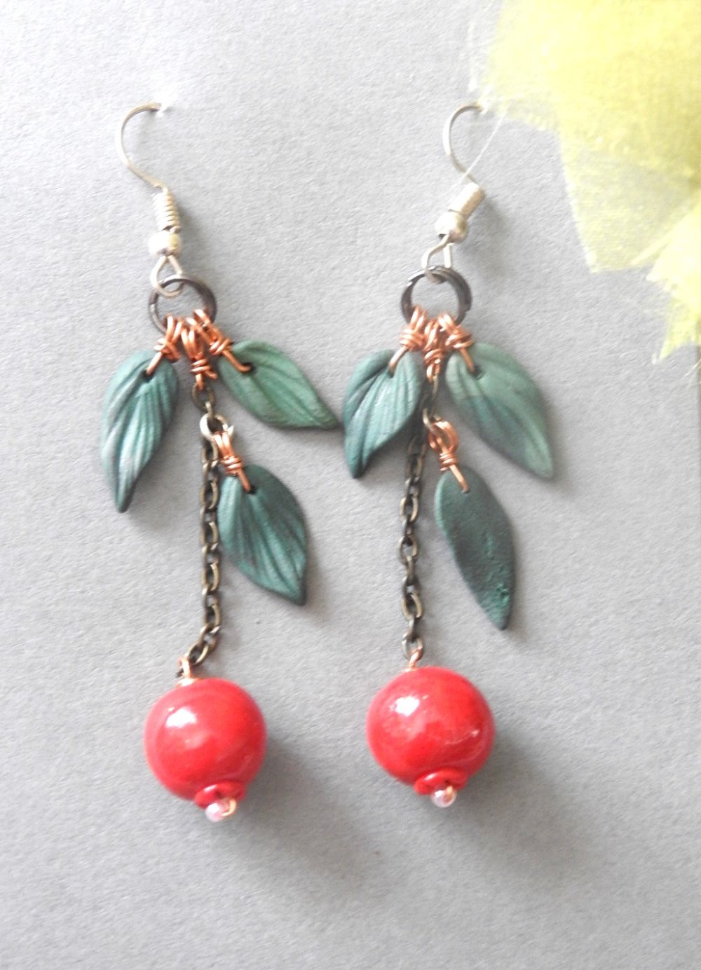 boucles d oreilles goyavier, création unique, longueur 7 cm.